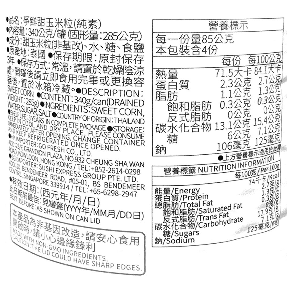 爭鮮甜玉米粒,嚴選非基因改造玉米,顆粒飽滿,口感清甜多汁。開罐即食,方便快捷,為您的餐桌增添一份美味與健康。無論是搭配沙拉、拌飯,還是直接食用。罐裝設計,易於儲存,隨時隨地都能享受到新鮮玉米的滋味。是您居家常備、外出旅行的理想選擇。