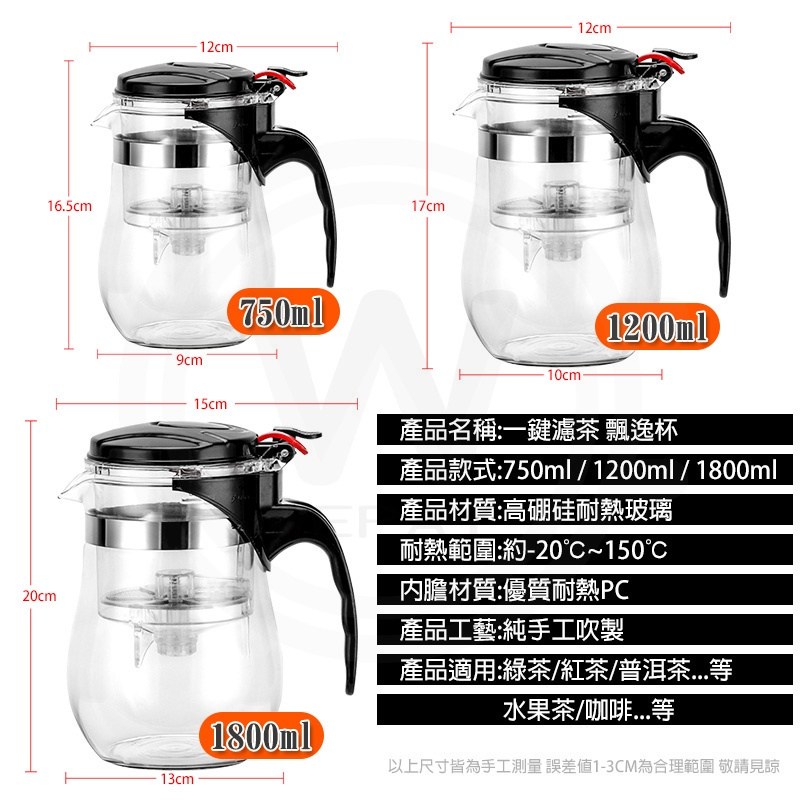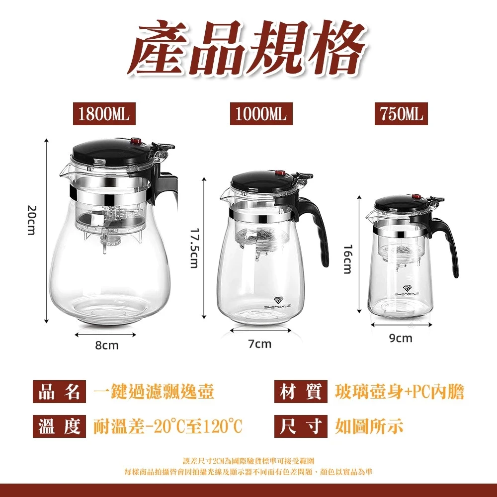 - 透明玻璃壺身,沖泡過程一目瞭然,輕鬆掌握茶湯濃淡,享受視覺與味覺的雙重盛宴。