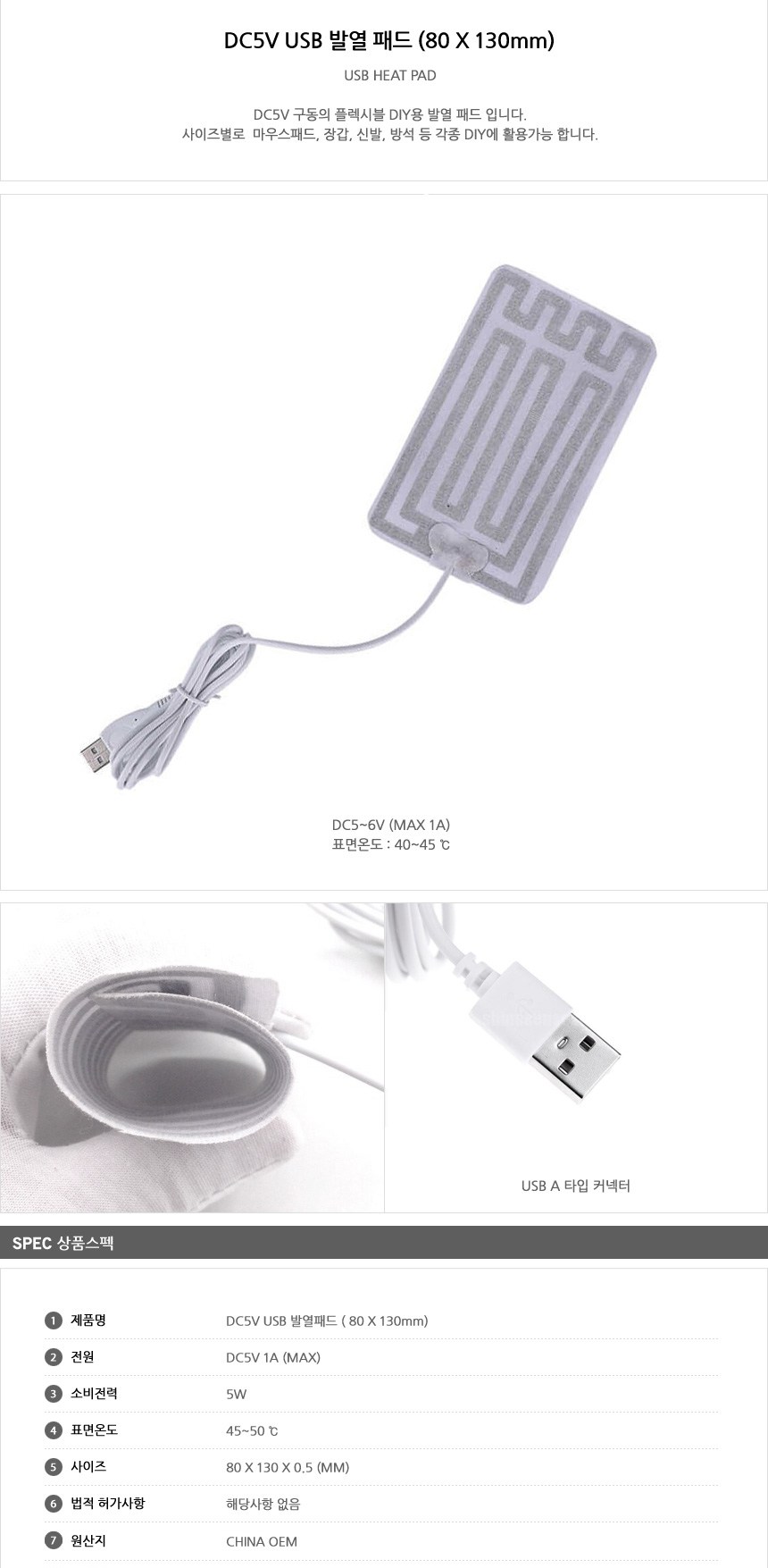 DC5V USB 發熱墊 80 x 130 mm, L2048, 單一顏色