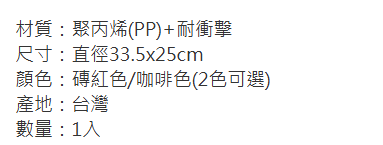 使用百貨King花兒姿皇家浮雕花盆,為您的花園或室內空間增添一抹古典優雅的氣息。這款咖啡色的花盆,尺寸為33.5 x 25公分,採用耐衝擊的聚丙烯(PP)材質製成,堅固耐用,能長久保持美觀。精緻的皇家浮雕設計,為您的植物提供一個華麗的家,讓它們更加引人注目。此商品為一組兩個花盆,讓您能同時種植多種喜愛的花卉或綠色植物,輕鬆打造充滿生機的園藝角落。台灣製造,品質保證,讓您安心使用。