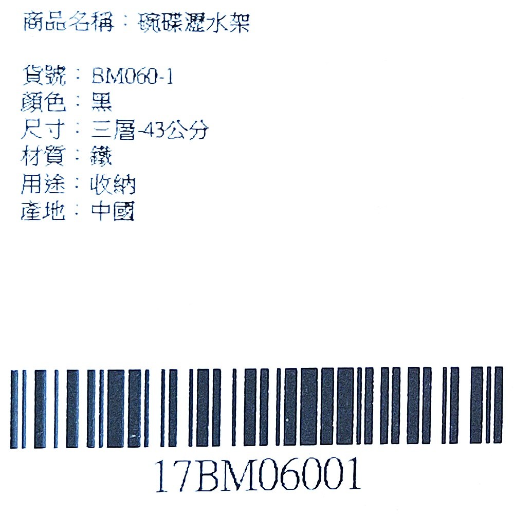 碗碟瀝水架 43公分 鐵質, 3層, 黑色, 1個