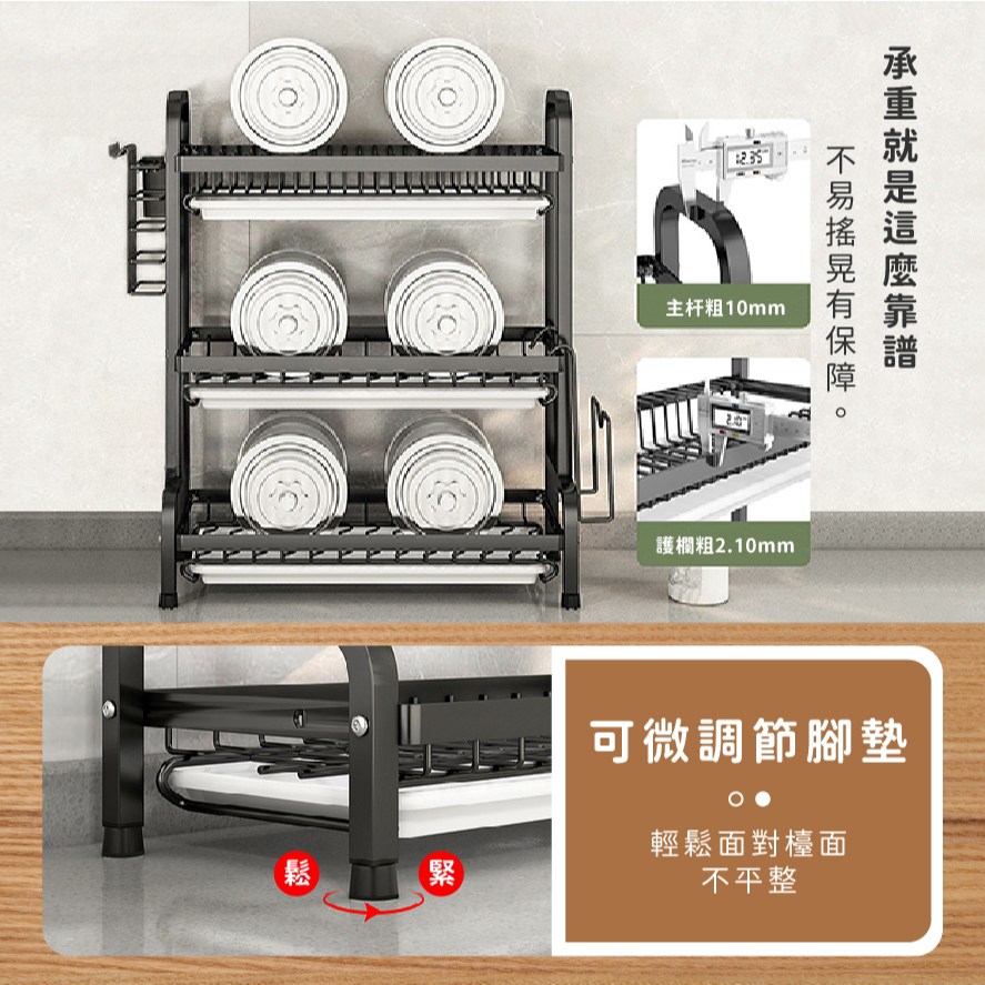 - 三層設計提供寬敞空間,輕鬆收納各式碗盤,讓廚房檯面更加整潔有序。