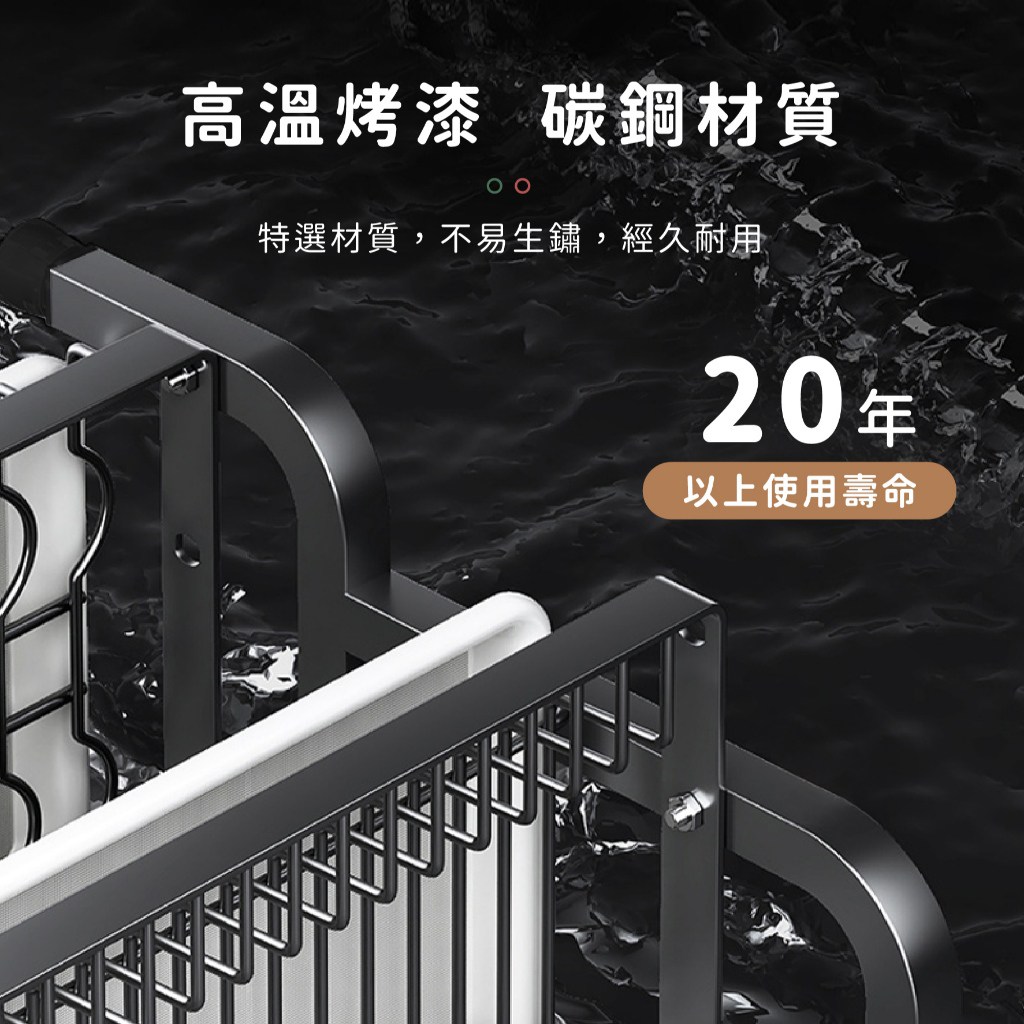 - 瀝水架採用優質碳鋼材質,堅固耐用不易變形,確保長期使用下的穩定性。