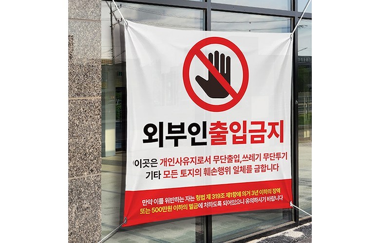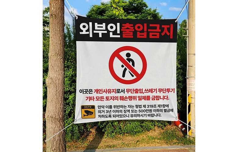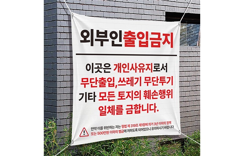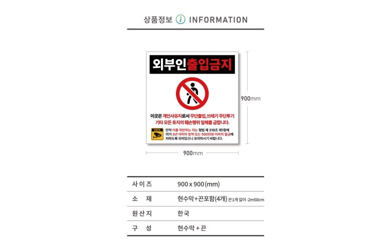這款禁止外人進入橫幅,尺寸為900 x 900毫米,配有四條繩子,方便安裝於任何地點。它清晰地傳達了禁止擅自進入的信息,有助於保護您的私人土地或辦公區域,避免不必要的干擾。橫幅上的文字明確指出,未經授權進入、亂丟垃圾等行為將受到法律制裁,以達到警示作用。韓國製造,是維護場所秩序的理想選擇。適用於各種需要限制人員進入的場所,如私人土地、辦公區域等。