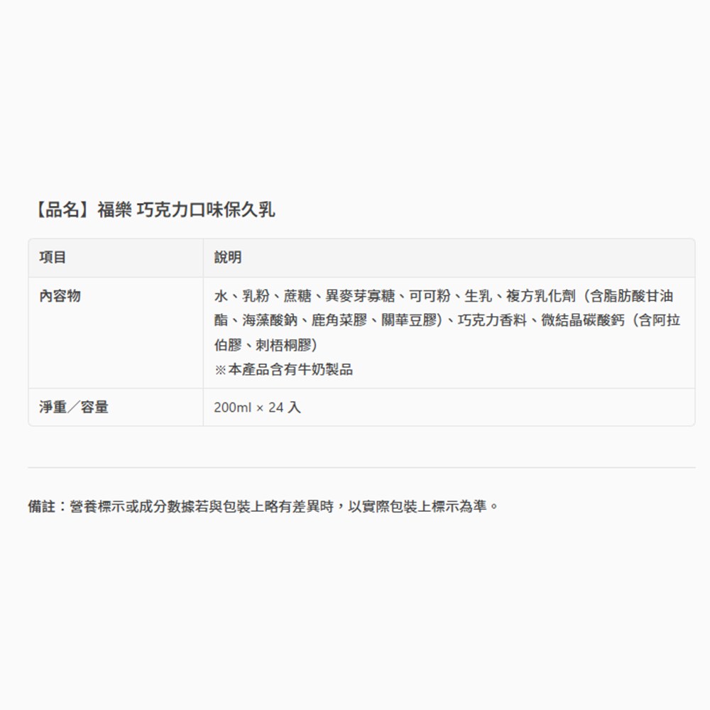 - 福樂巧克力保久乳,採用優質乳源,搭配香濃巧克力,口感豐富,讓您愛不釋手。