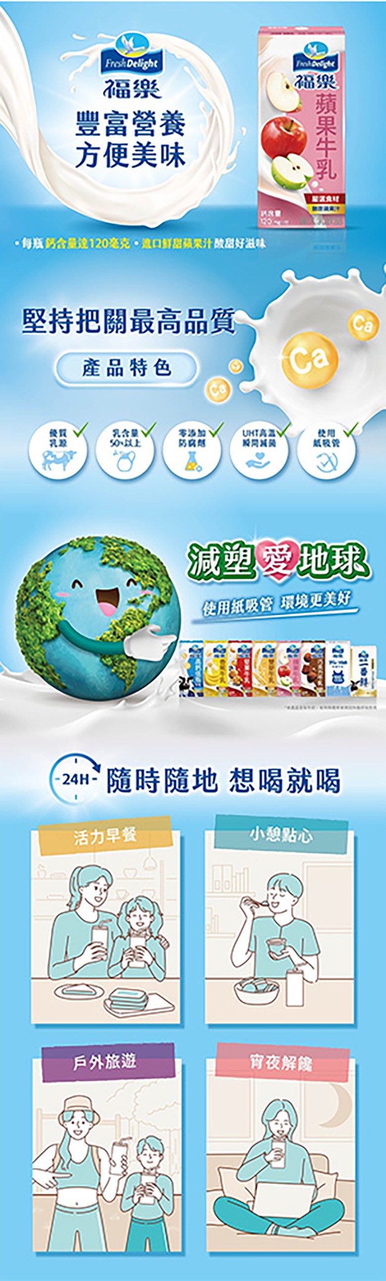 - 蘋果調味乳富含鈣質,有助於骨骼健康,隨時補充營養,讓您活力充沛每一天。