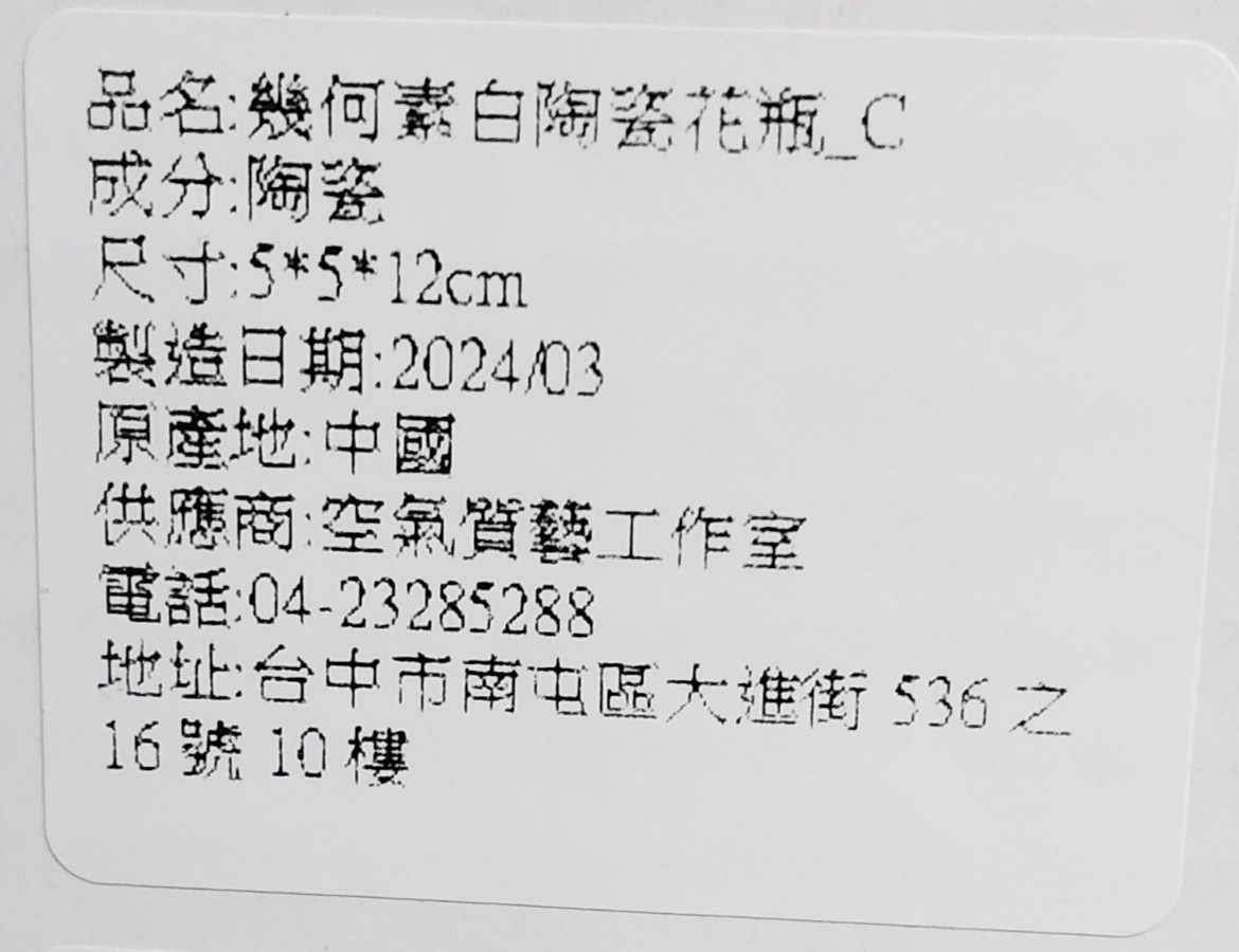 空氣選物 幾何素白陶瓷花瓶C, 白色, 5 x 5 x 12cm