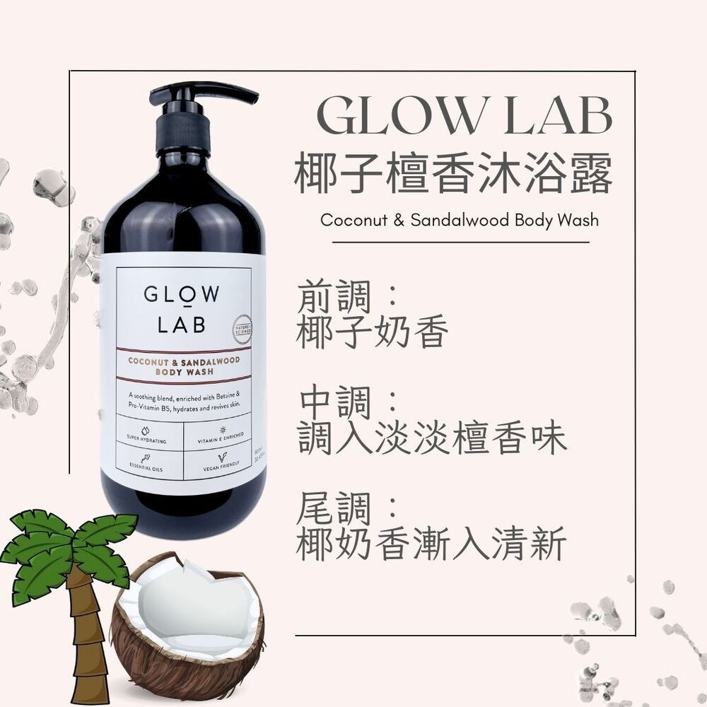 紐西蘭GLOW LAB植物精油沐浴露 椰子檀香2510, 900ml, 1瓶