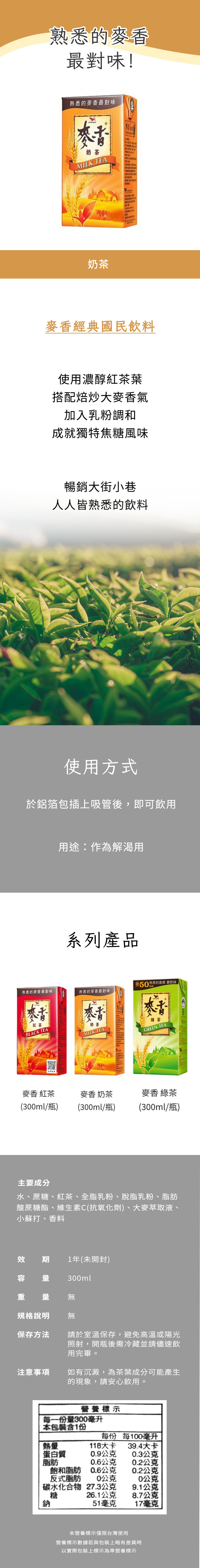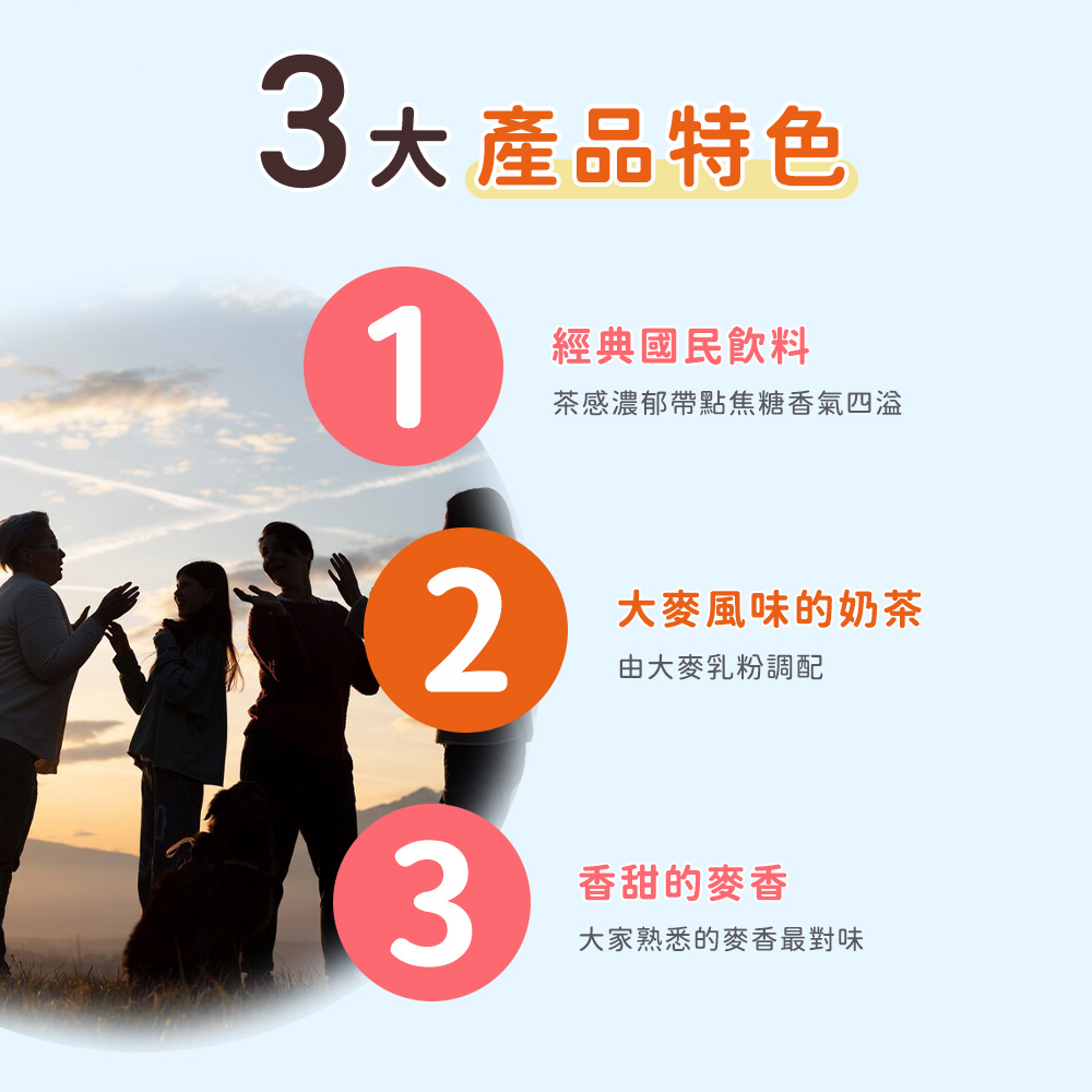 - 鋁箔包裝設計,方便攜帶,無論上班、上學或出遊,隨時隨地享受麥香奶茶的美味。