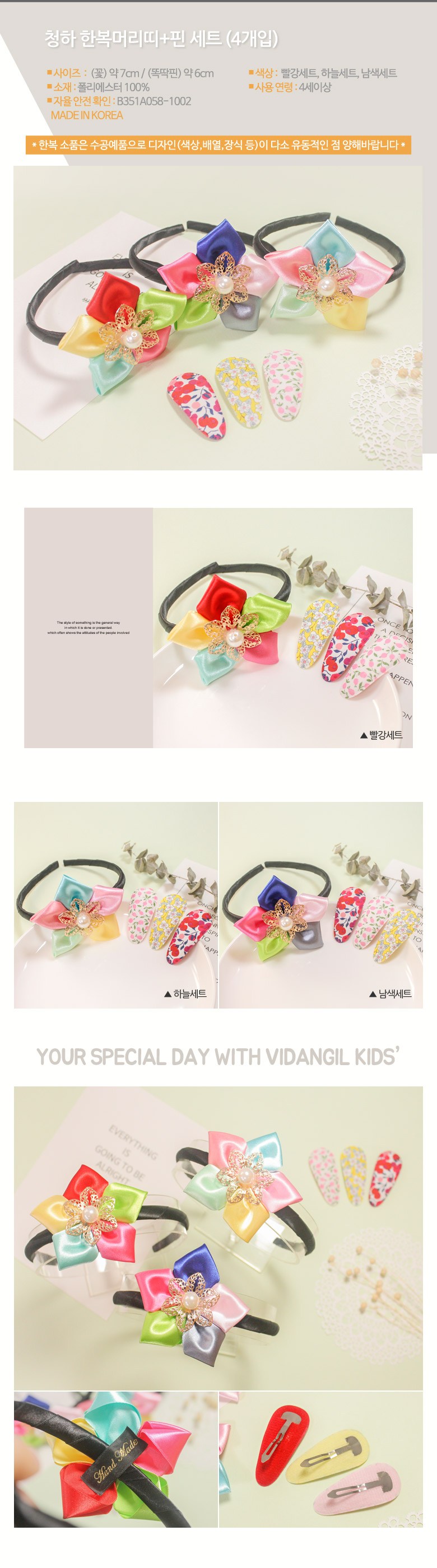 Bidan Gil青荷韓服髮箍髮夾4入組,是專為4歲以上兒童設計的精美髮飾套裝。這款套裝包含精緻的髮箍和髮夾,採用優質聚酯纖維材質,觸感柔軟舒適,呵護寶寶的細嫩髮絲。設計靈感源自傳統韓服配飾,色彩鮮明,造型可愛,能為孩子們的整體造型增添亮點。無論是日常穿搭還是特殊場合,都能讓寶貝們展現獨特魅力。紅色、天藍色和海軍藍三種套裝可選,輕鬆搭配不同風格的服裝。