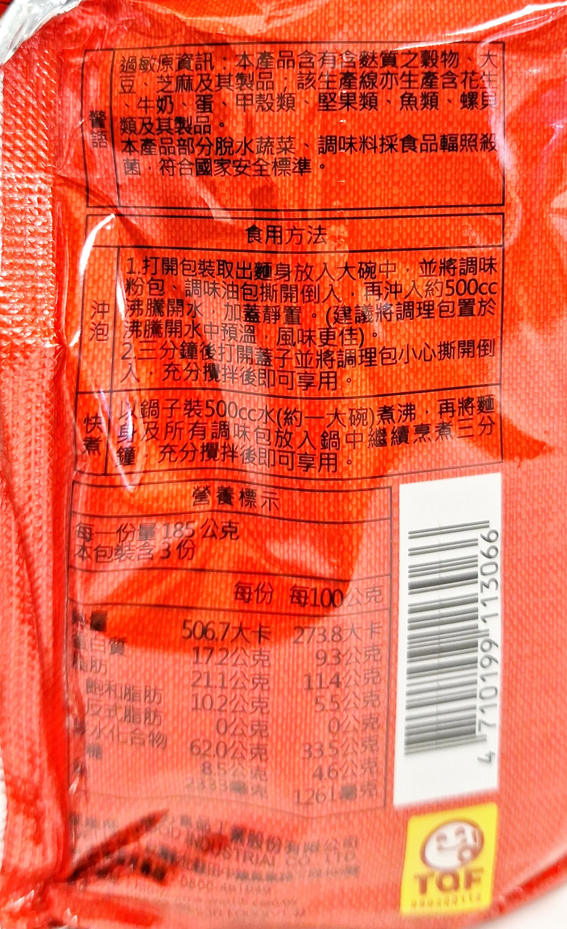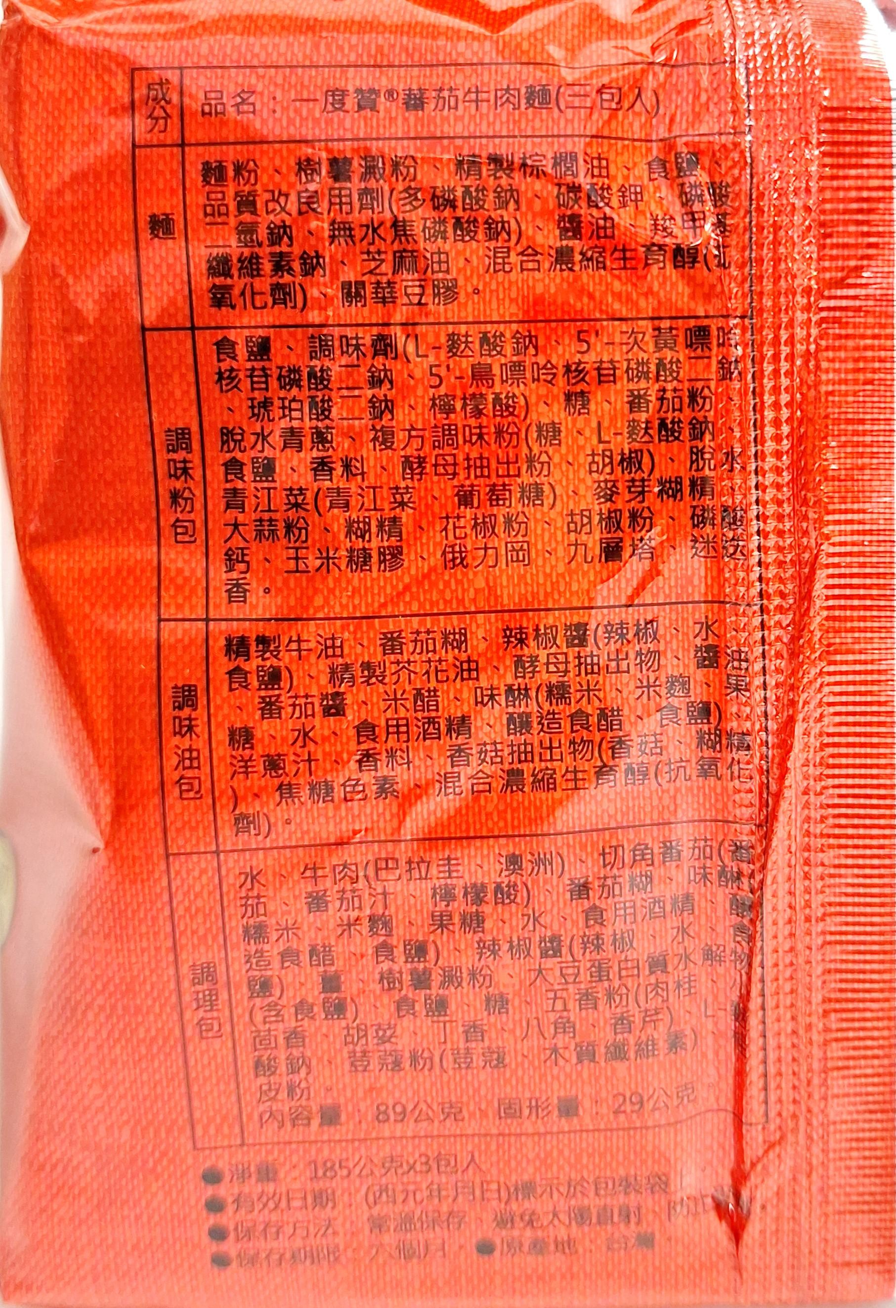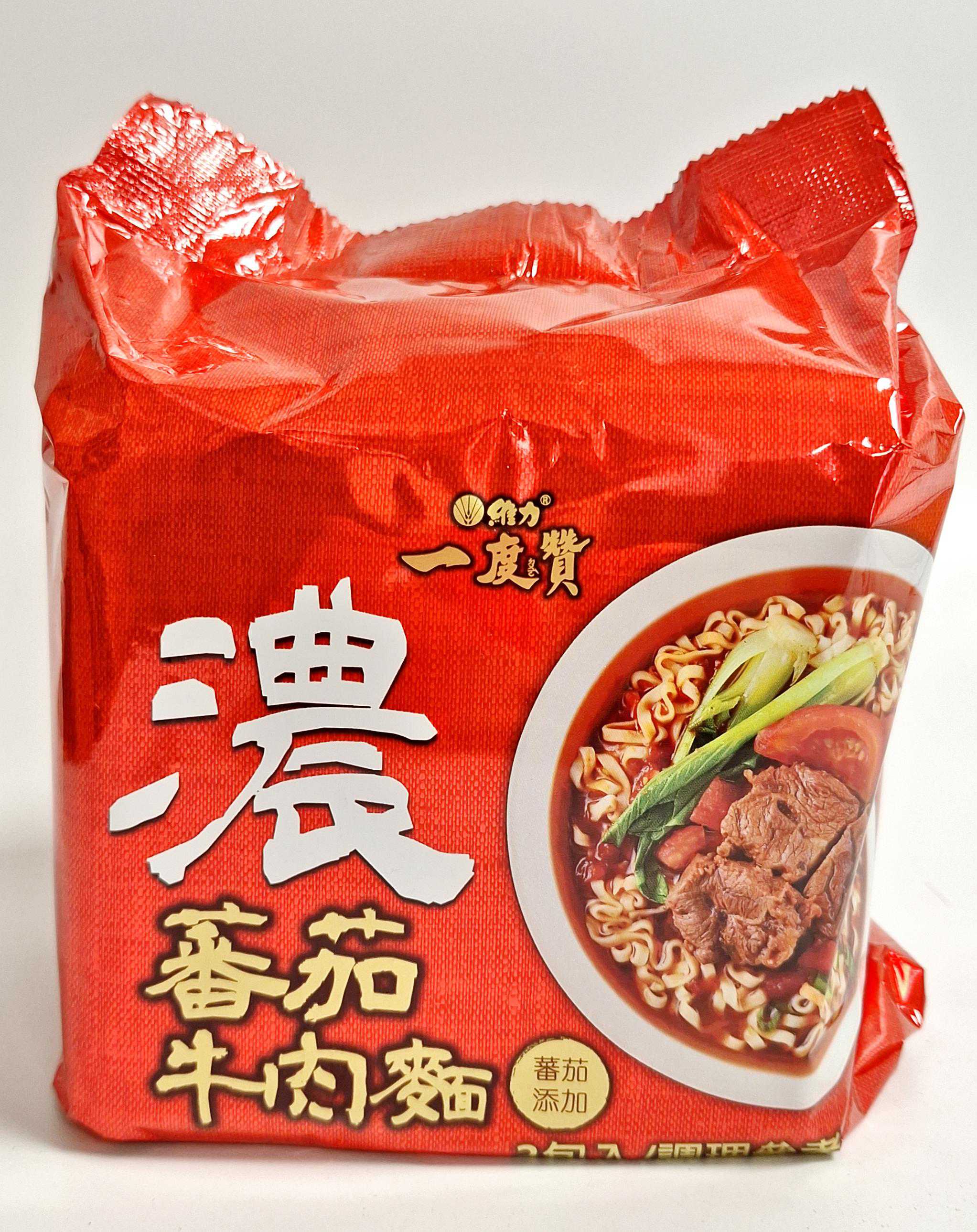 維力一度贊蕃茄牛肉麵,濃郁的蕃茄湯底搭配Q彈有嚼勁的麵條,每一口都充滿幸福感。精選牛肉塊,搭配新鮮蔬菜,讓您在家也能輕鬆享受美味的牛肉麵。每袋包含三份185克的麵,方便快捷,是您忙碌生活中的理想選擇。無論是快速午餐還是深夜加班,都能隨時滿足您的味蕾。維力品牌值得信賴,讓您安心享受美食。