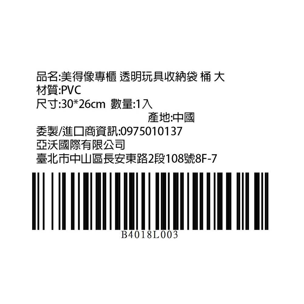 美得像專櫃 透明玩具收納袋/桶 大, 1個, 透明色