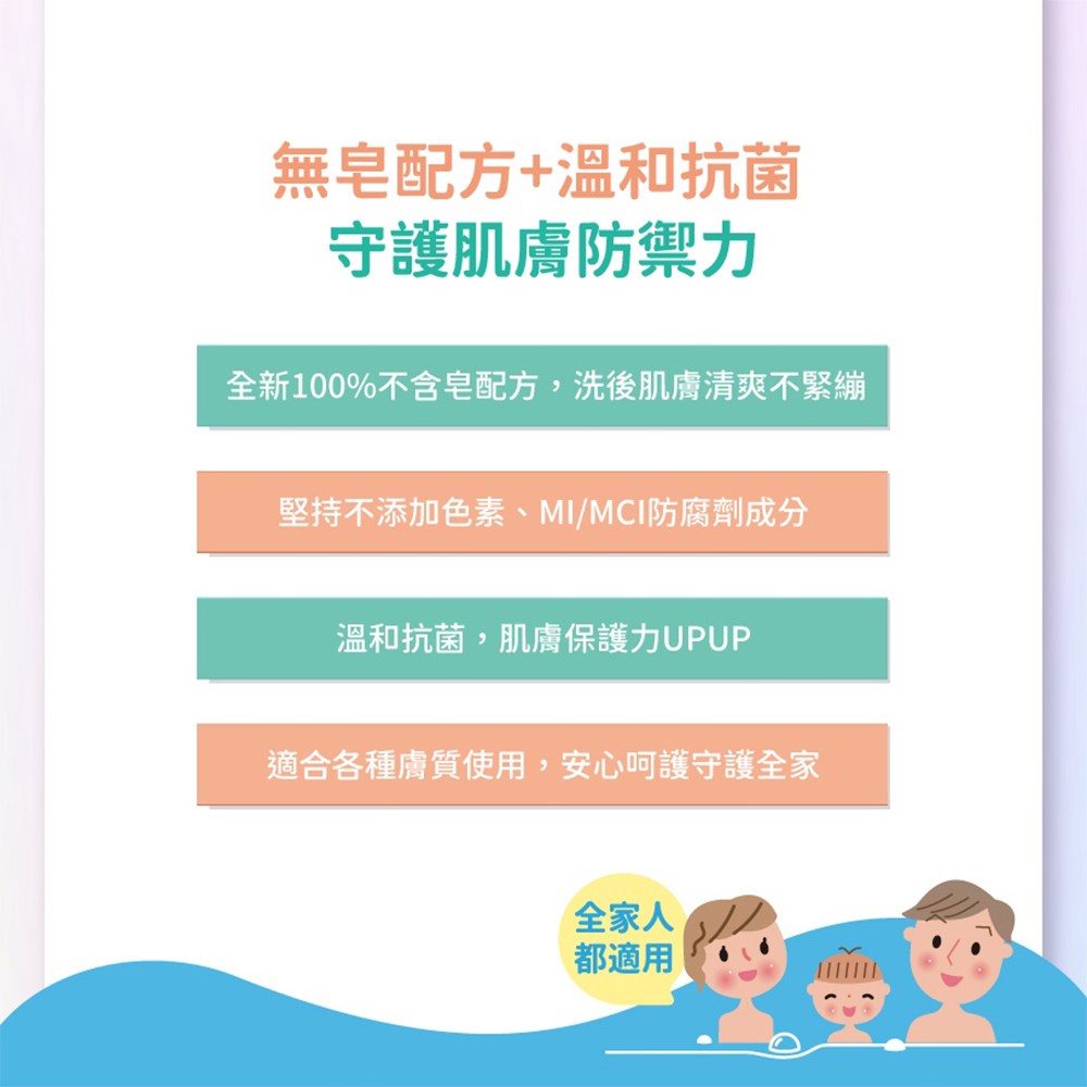 - - PH5.5溫和配方,親膚不刺激,呵護全家人的細緻肌膚。