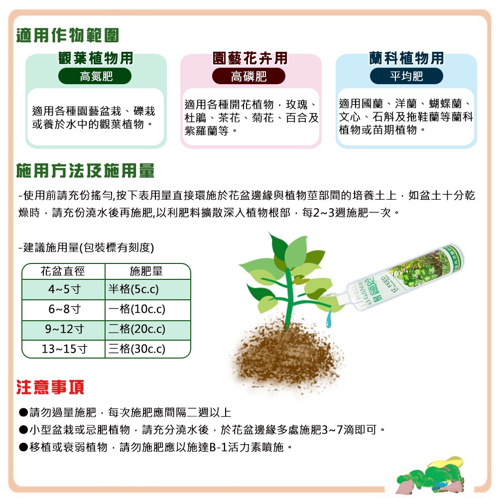- 使用翠筠易施肥,免稀釋直接施用,簡單方便,新手也能輕鬆上手,享受園藝樂趣。