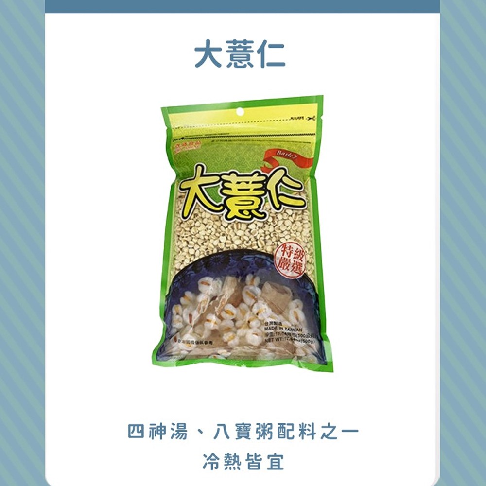 - 大薏仁用途廣泛,可製作成薏仁漿、薏仁湯、八寶粥等,多種變化滿足您的味蕾,享受不同風味。