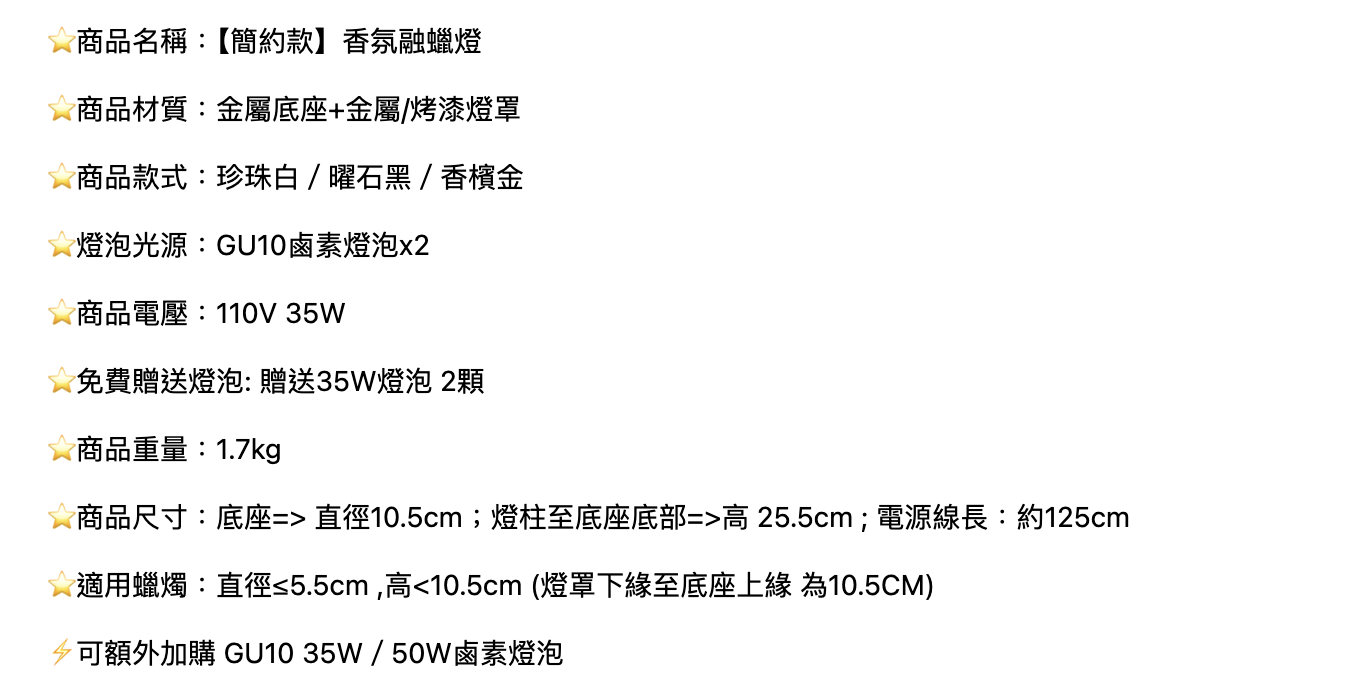 職日生簡約融蠟燈,以簡約的黑色金屬設計,為您的空間增添一份現代感。這款融蠟燈不僅美觀,更能安全有效地融化您喜愛的香氛蠟燭,無需點火,避免明火危險,讓您安心享受香氛。調光功能讓您隨心調整亮度,營造不同的氛圍。隨附兩顆燈泡,方便您立即使用。金屬底座穩固耐用,烤漆燈罩質感出眾,為您的居家生活帶來更多美好。