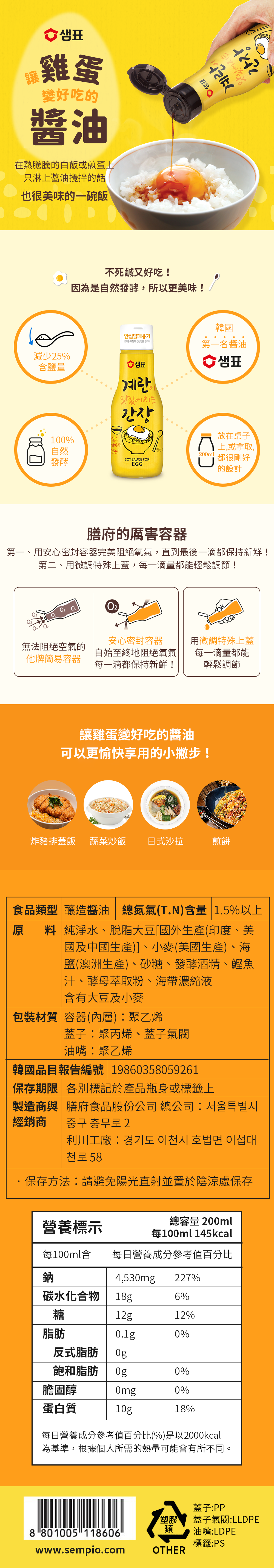 - 採用安心密封容器,有效阻絕空氣,確保醬油的新鮮度,讓您每一滴都安心。