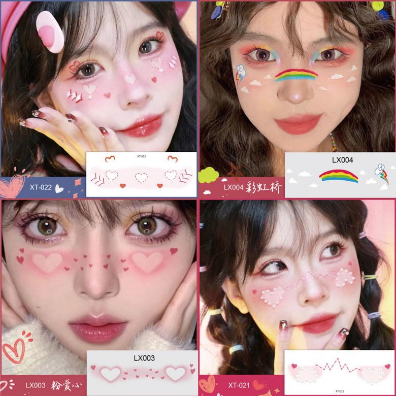 臉部紋身貼 應援臉貼 演唱會馬拉松臉貼 腮紅臉貼 暗黑創意妝容 可愛創可貼, 臉貼3.XT-019..., 1個