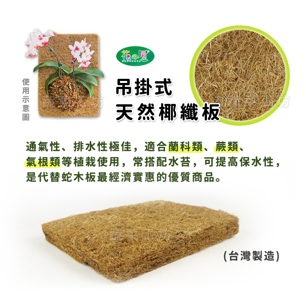 花之屋吊掛式天然椰纖板是蘭科、蕨類及氣根植物的理想選擇。其天然椰纖材質提供優異的通氣性和排水性,有效防止根部腐爛,讓植物健康成長。搭配水苔使用,更能提高保濕效果,為植物提供更佳的生長環境。此款椰纖板不僅經濟實惠,更是取代蛇木板的優質選擇,輕鬆打造綠意盎然的居家空間。台灣製造。