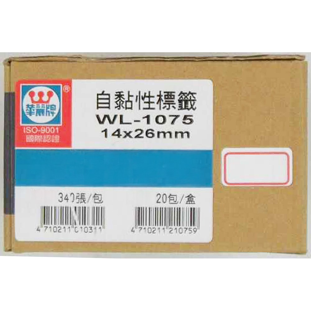 華麗牌自黏性標籤,紅框設計,型號WL-1075,每張尺寸為26 x 14mm,一盒共6800張,滿足大量標籤需求。適用於辦公室、學校、倉庫等各種場所,方便物品分類、標記和管理。紅色邊框醒目易識別,提高工作效率。自黏性設計,黏貼牢固,不易脫落,使用方便快捷。高品質材料,書寫流暢,字跡清晰,經久耐用。