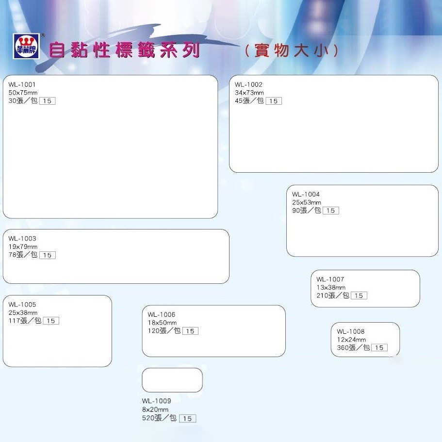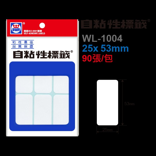 華麗牌 自黏性標籤 WL-1004 25 x 53mm, 90張, 20包