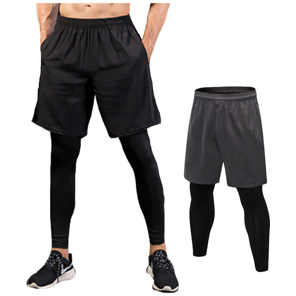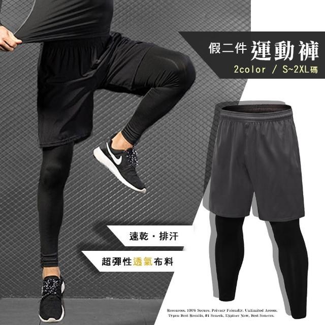 葉子小舖 男褲 兩件式運動褲 - 大容量口袋 速乾排汗 超彈性透氣布料, L, 黑色