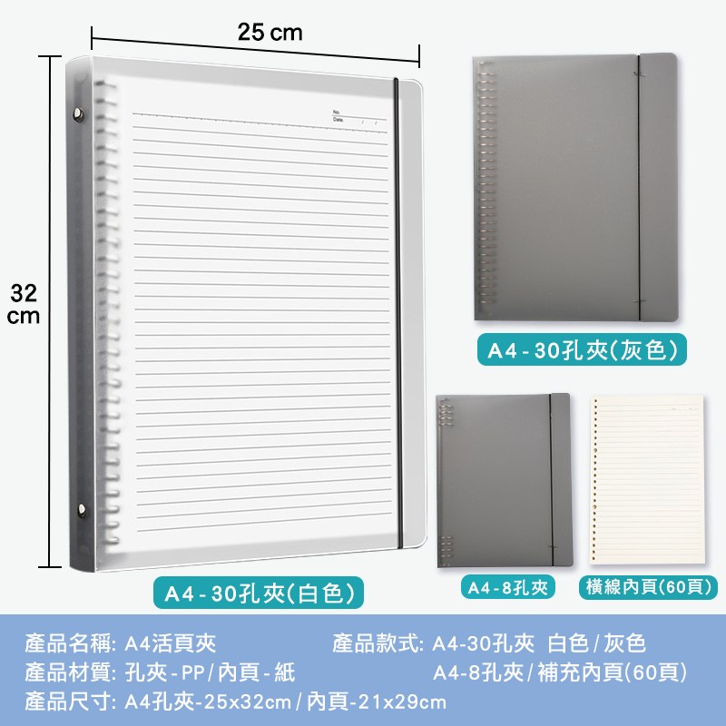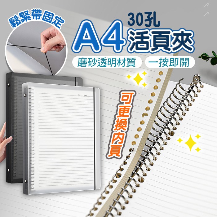- 30孔設計,穩固固定內頁,不易鬆脫,讓您的重要資料安全有保障,避免遺失。