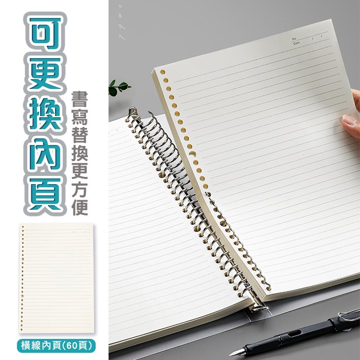 - 可拆式活頁夾設計,輕鬆替換內頁,讓您隨時更新筆記內容,保持靈活的學習狀態。