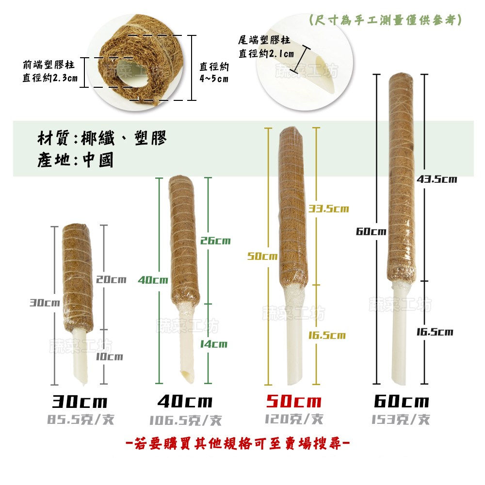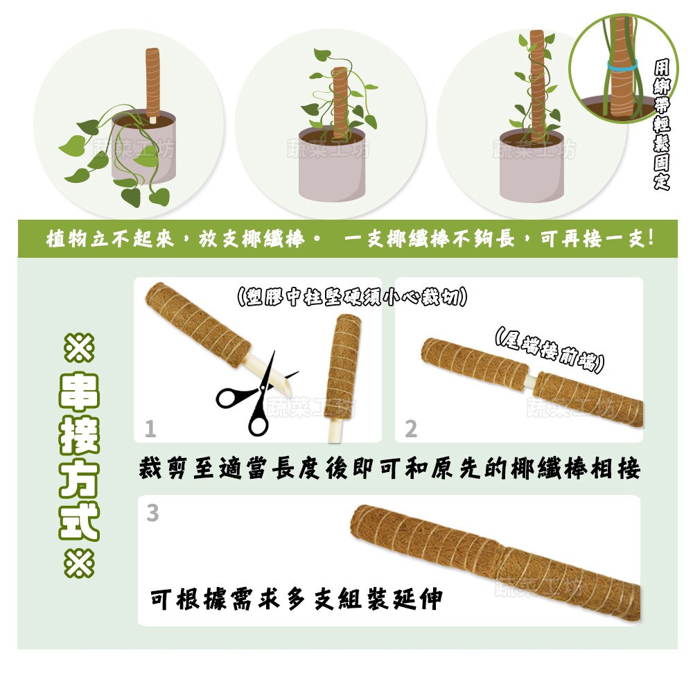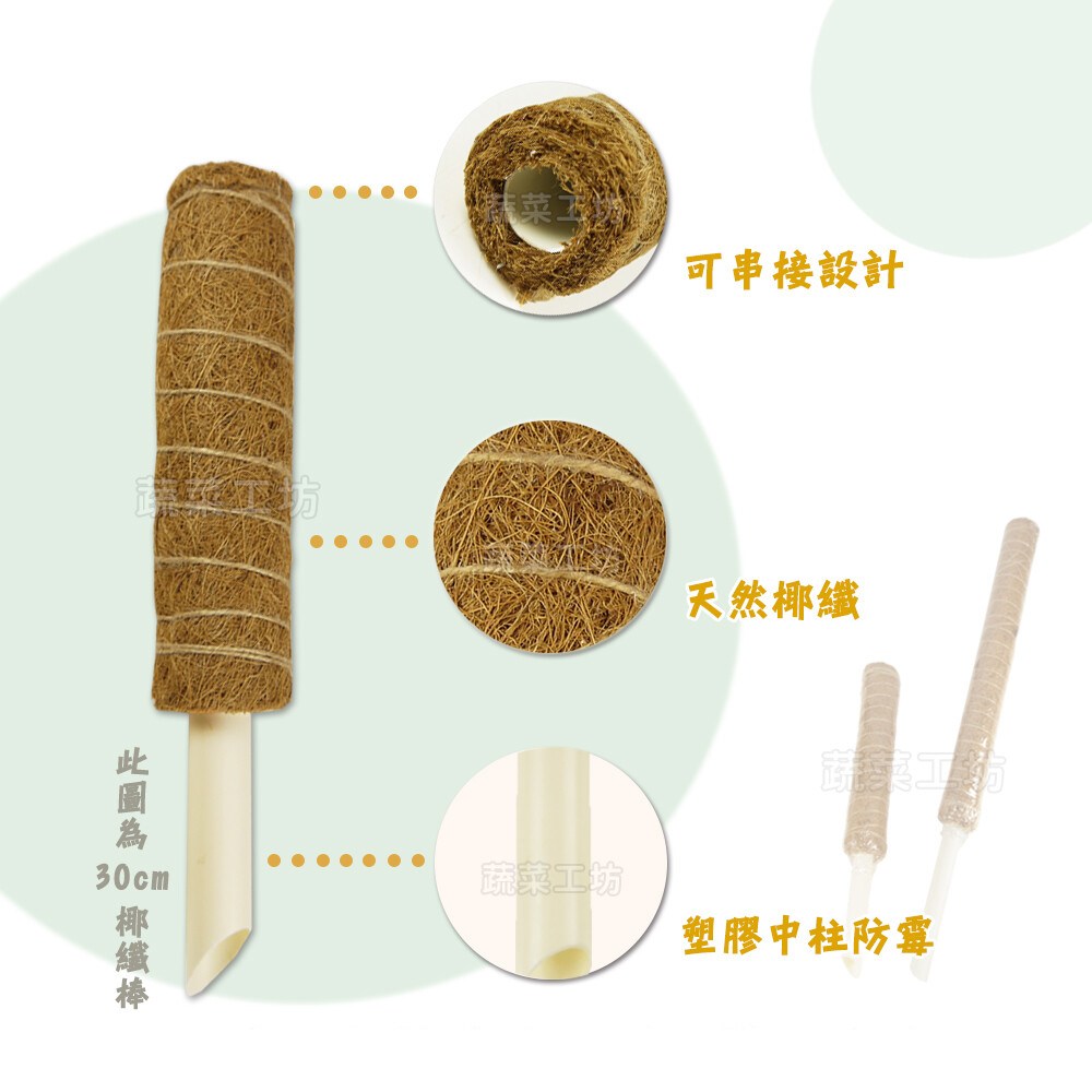 蔬菜工坊可串接式椰纖棒是您園藝的好幫手,採用天然椰纖製成,透氣且排水性佳,有助於植物根部健康生長。獨特的可串接設計,讓您可以根據植物的生長高度自由延伸,提供更完善的支撐。堅固的塑膠中柱,確保椰纖棒的穩定性,讓您的植物能夠健康成長。適用於觀葉植物、攀爬植物、藤蔓植物等多種植物,是您打造綠意盎然居家環境的理想選擇。使用綁帶輕鬆固定,讓植物不再東倒西歪。