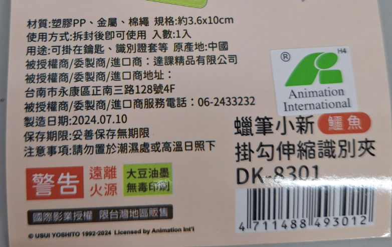這款蠟筆小新掛勾伸縮識別夾,讓您的工作或學習生活更加輕鬆有趣!可愛的鱷魚造型,不僅實用,還能展現您的個性。伸縮設計方便您隨時取用識別證或其他物品,無需彎腰或解開掛繩。堅固耐用的材質,確保長時間使用不易損壞。無論是上班族、學生或任何需要佩戴識別證的人,這款掛勾伸縮識別夾都是您的理想選擇。讓蠟筆小新陪伴您,每天都充滿活力!