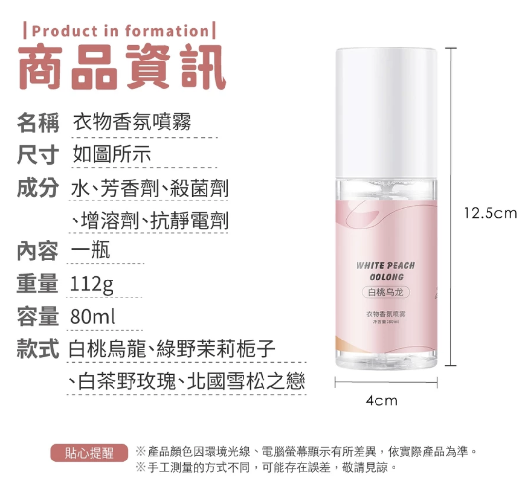 讓您的衣物散發清新自然的北國雪松香氣!這款衣物香氛噴霧,採用獨特配方,能有效去除異味,同時留下持久迷人的雪松木質香調。每瓶80ml,一次購買8罐,讓您隨時隨地都能享受清新氛圍。不僅能用於衣物,還可噴灑於床單、窗簾等織品,營造舒適宜人的居家環境。成分安全溫和,不刺激皮膚,讓您安心使用。告別惱人異味,擁抱清新香氛,就從北國雪松之戀衣物香氛噴霧開始!