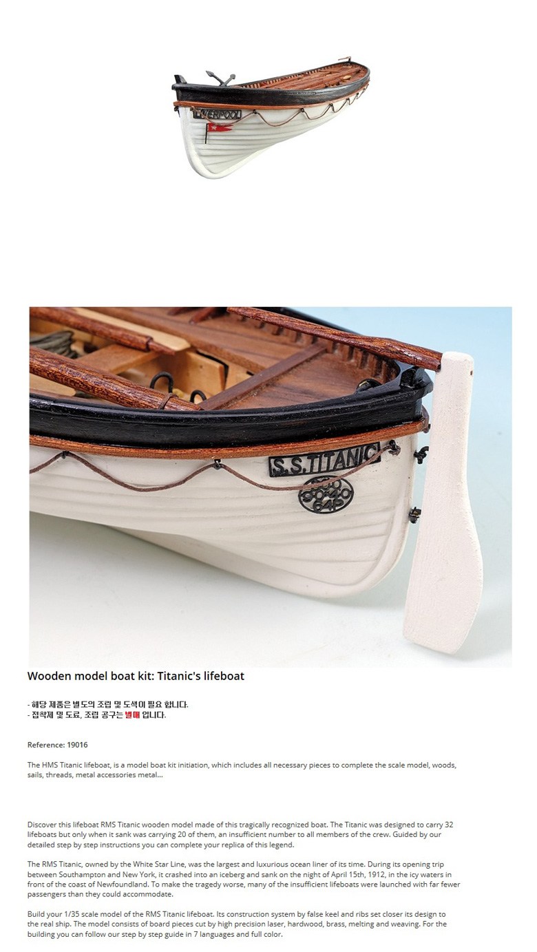 複製品1/35 RMS泰坦尼克號救生艇木帆船 ATS190168, 1個