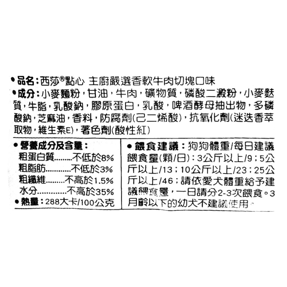 - 西莎牛肉點心,口感軟嫩,讓您的愛犬享受美味,每一口都是幸福的滋味。