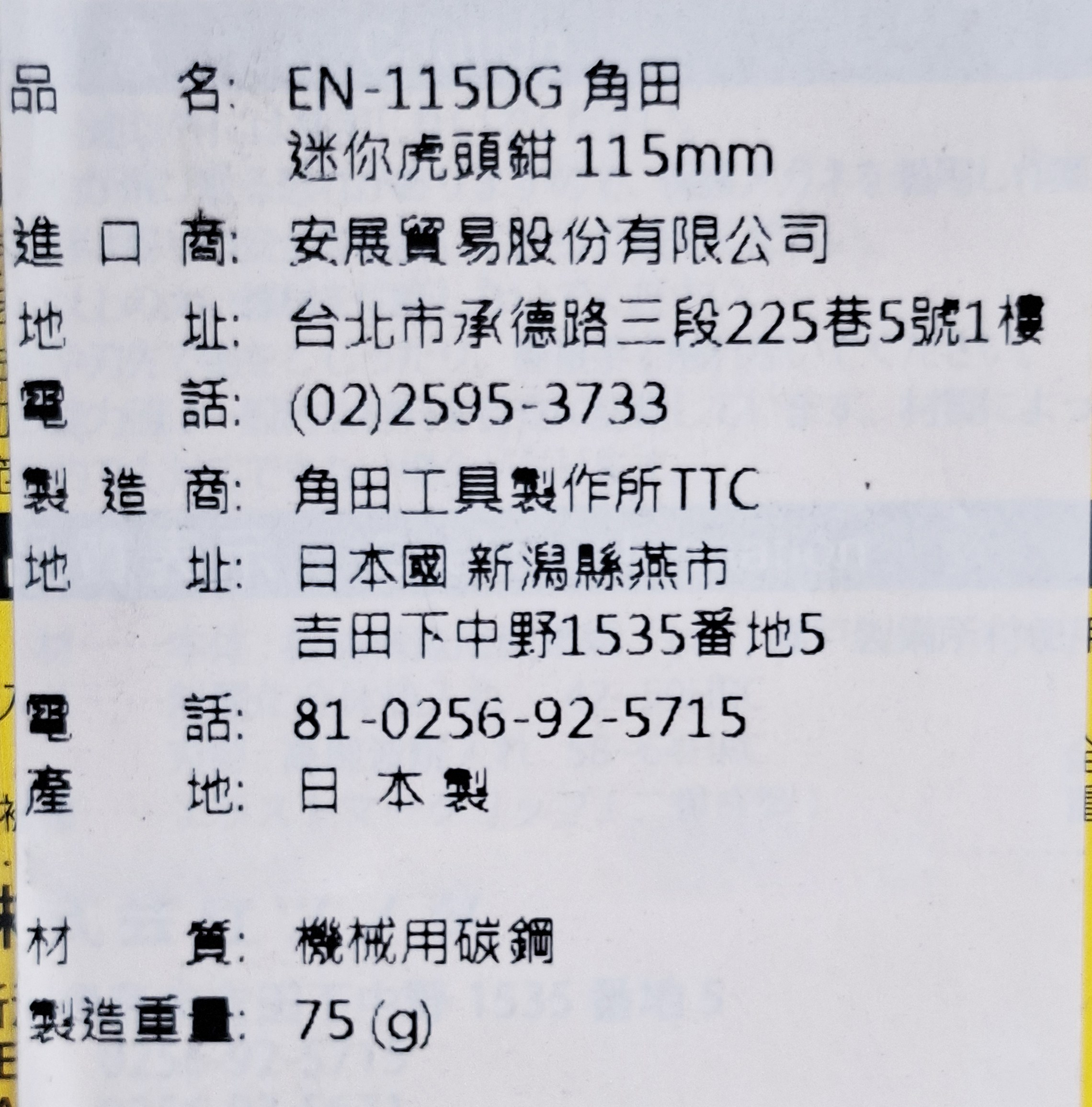 角田TTC迷你虎頭鉗 EN-115DG 115mm,輕巧耐用,模型手工藝適用, 1個