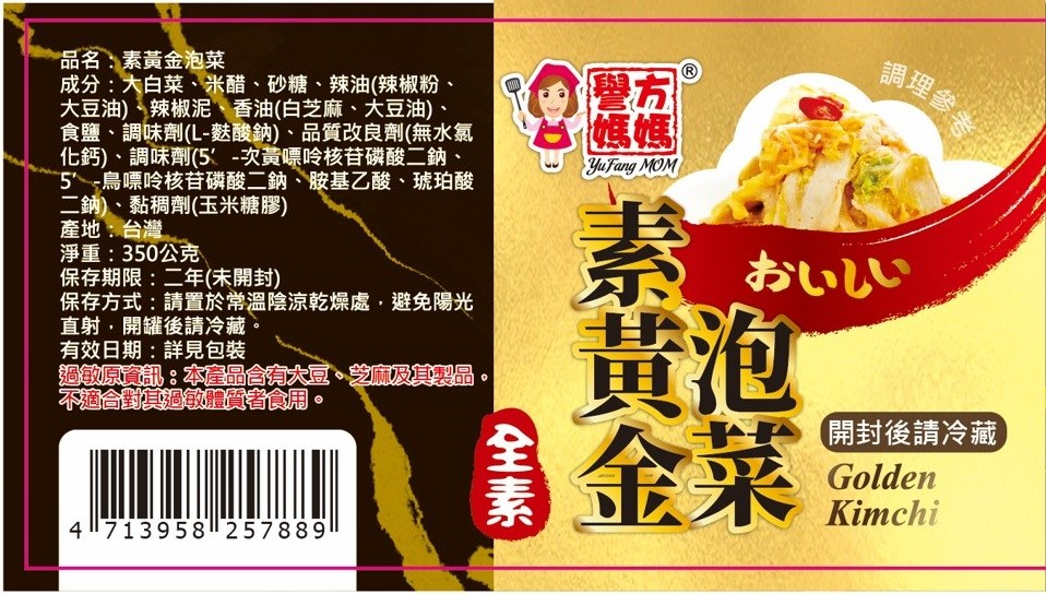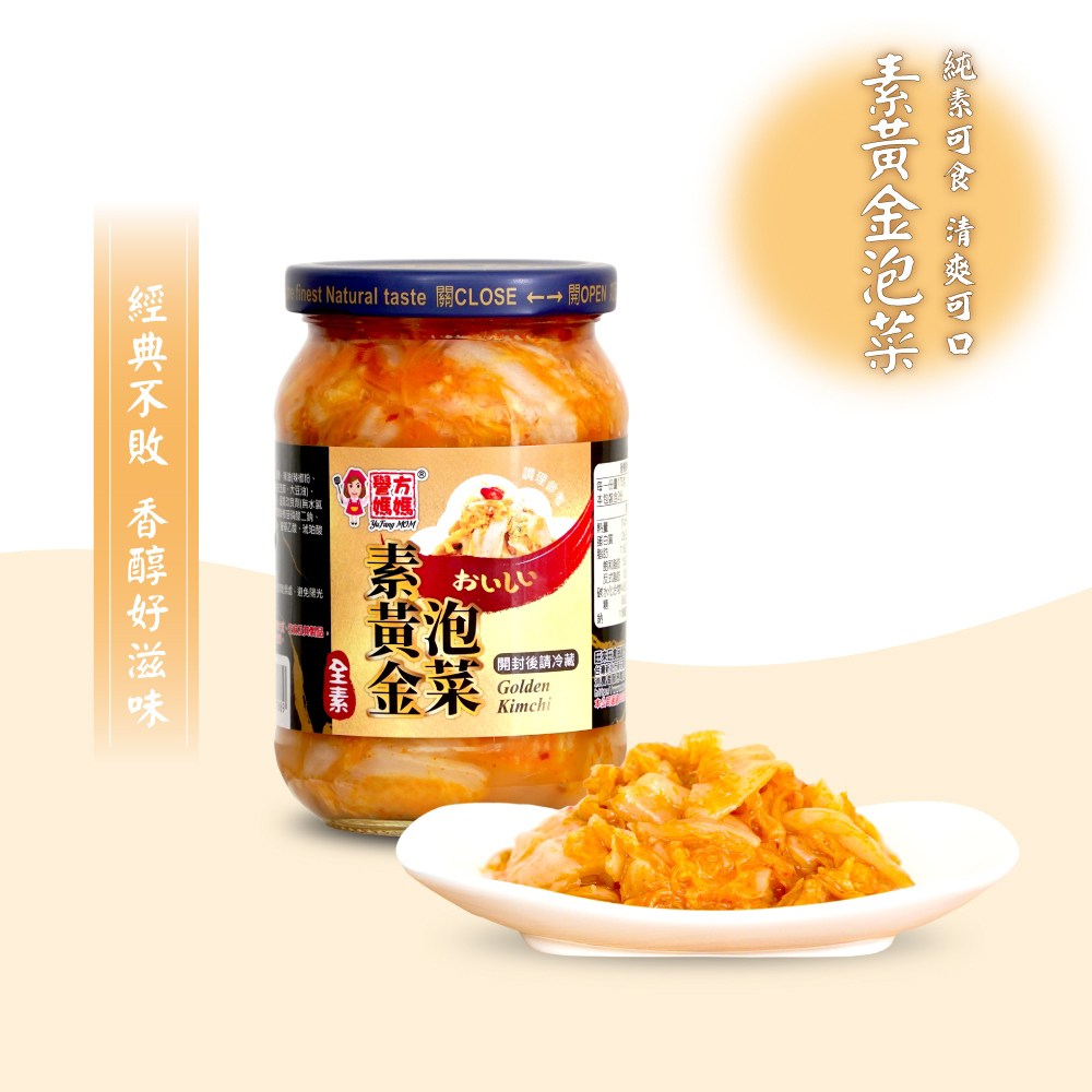 譽方媽媽素黃金泡菜,嚴選大白菜,搭配獨家素食配方,口感清脆爽口,酸甜微辣,風味獨特。350g罐裝,適合素食者享用,無論是搭配米飯、麵食,或是作為開胃小菜,都能為餐桌增添美味。開封後請冷藏,確保新鮮風味。譽方媽媽品牌,品質保證,讓您安心品嚐道地台灣風味。