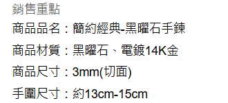 這款財神小舖簡約經典黑曜石手鍊,以3mm切面黑曜石精製而成,散發低調奢華的光芒。黑曜石被認為具有避邪擋煞、招財納福的能量,為您帶來平安與好運。手鍊尺寸約13~15cm,男女皆宜,簡約的設計適合日常配戴,展現個人品味。鍍14K金的扣環,增添質感與耐用性。無論是自用或送禮,都是一份充滿祝福的心意。讓這款黑曜石手鍊,為您的生活注入更多正能量。