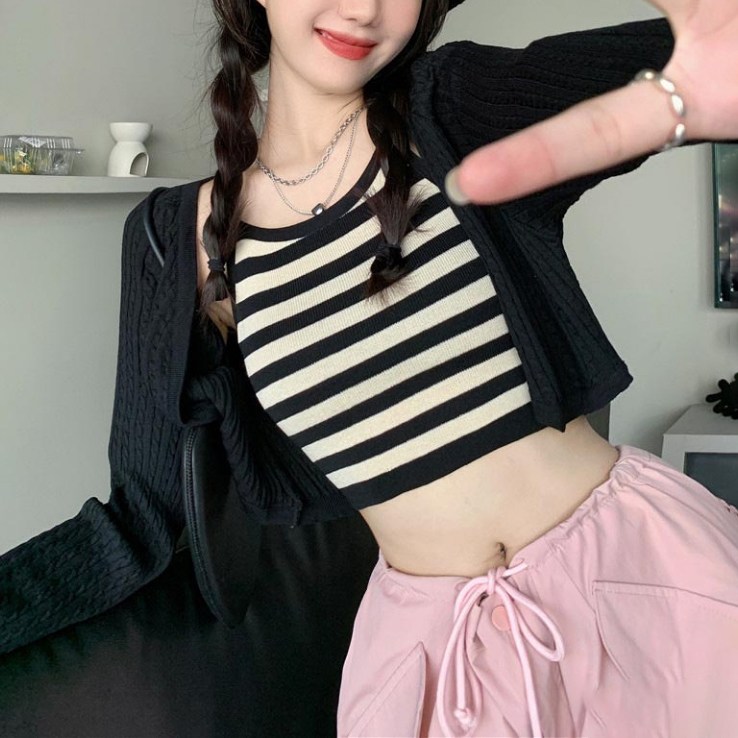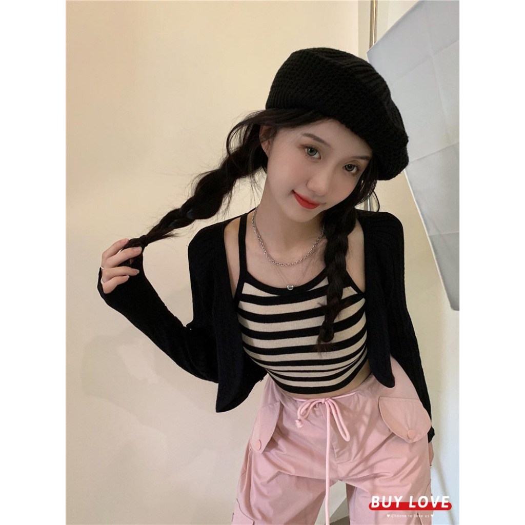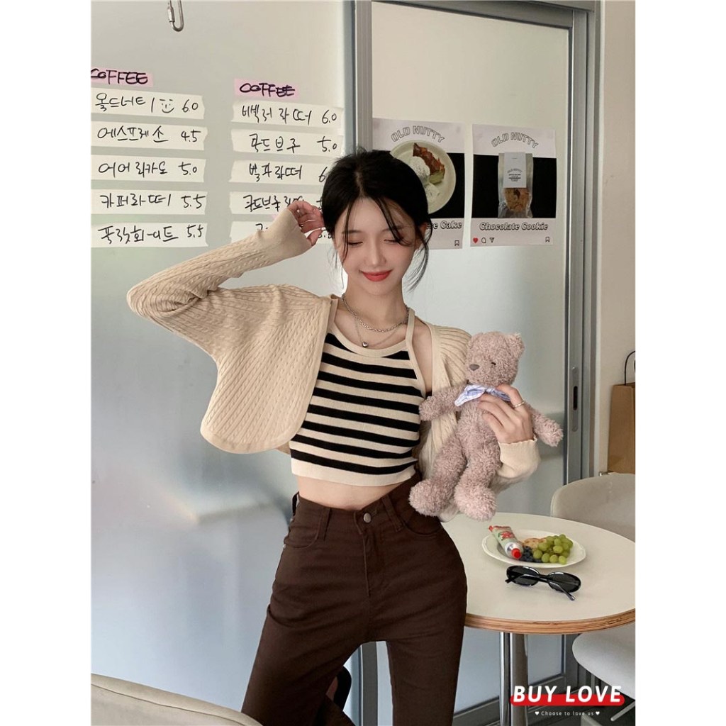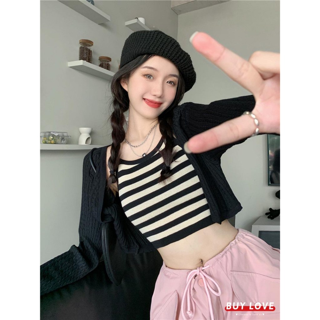 這款「買到戀愛」奶茶系外套辣妹針織長袖短版罩衫,是展現妳獨特魅力的完美選擇。套裝包含一件短版針織罩衫和一件合身背心,輕鬆打造性感又時尚的造型。黑色針織材質柔軟舒適,適合各種場合穿著。罩衫尺寸為胸寬42cm x 袖長62cm x 全長40cm,背心尺寸為胸寬31cm x 全長41cm,確保完美貼合身形。無論是搭配高腰褲或裙子,都能讓妳成為眾人矚目的焦點,散發自信光彩。