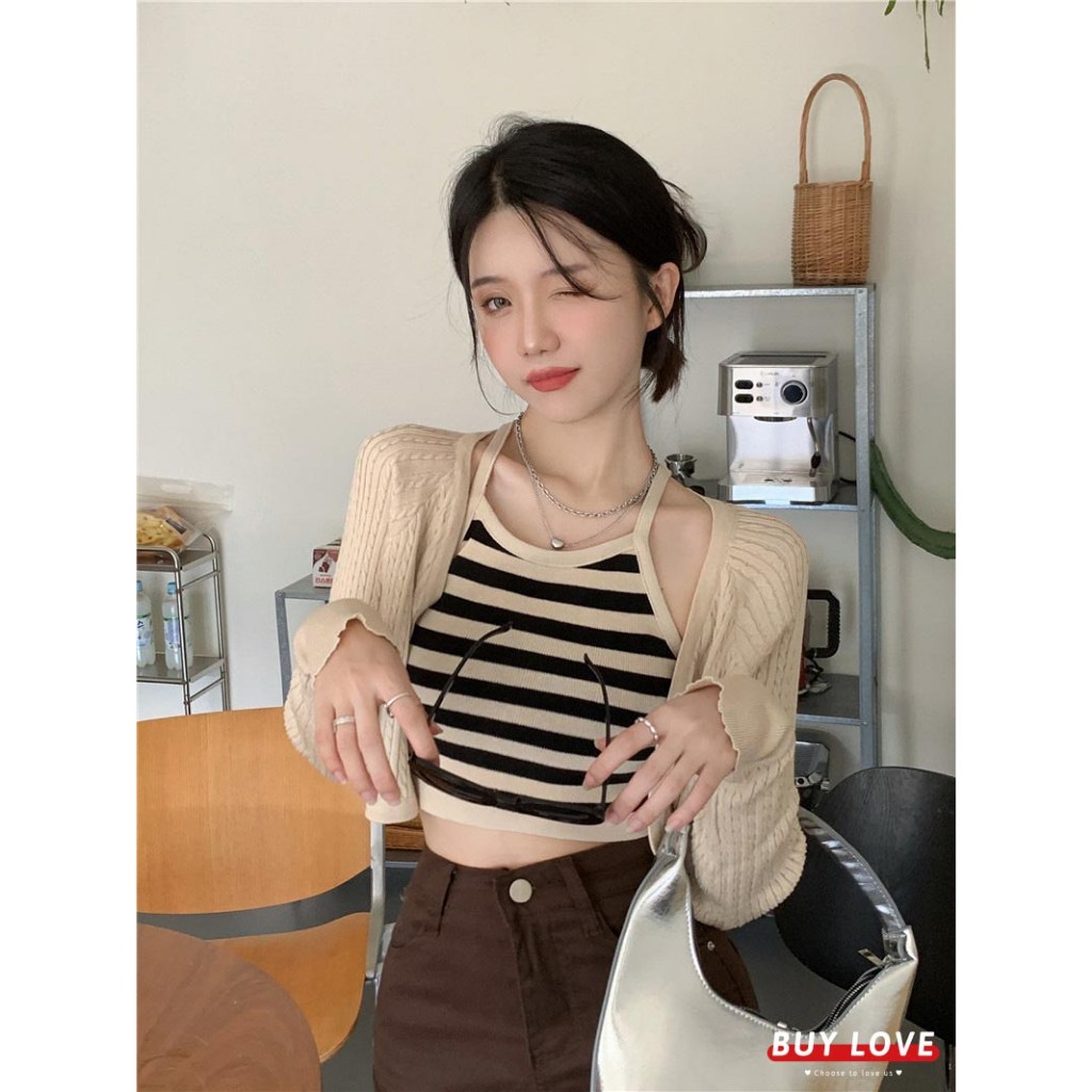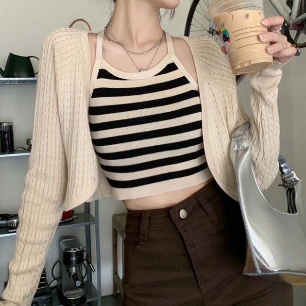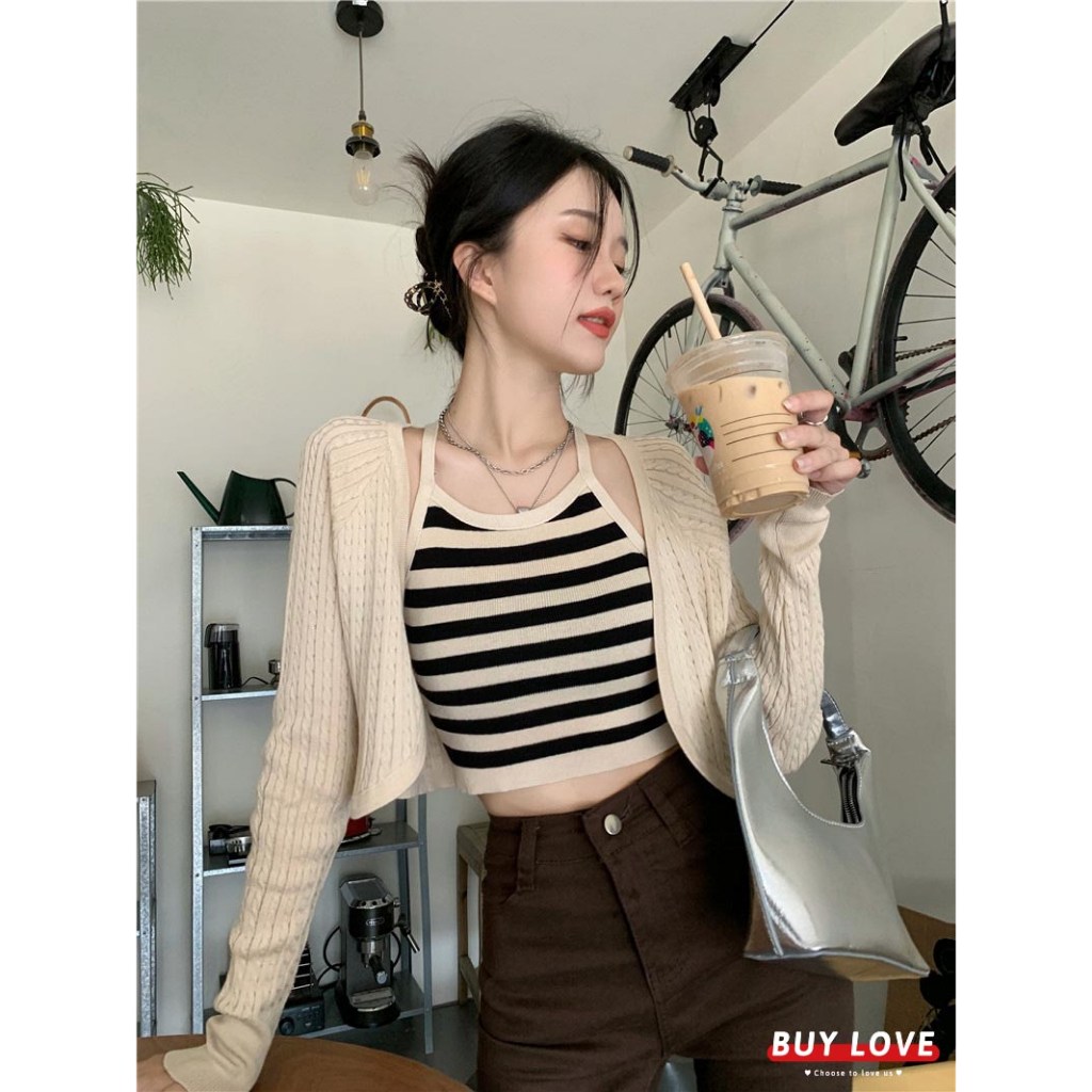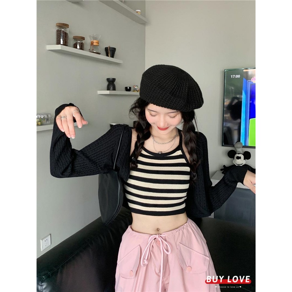 這款「買到戀愛」奶茶系外套辣妹針織長袖短版罩衫,是展現妳獨特魅力的完美選擇。套裝包含一件短版針織罩衫和一件合身背心,輕鬆打造性感又時尚的造型。黑色針織材質柔軟舒適,適合各種場合穿著。罩衫尺寸為胸寬42cm x 袖長62cm x 全長40cm,背心尺寸為胸寬31cm x 全長41cm,確保完美貼合身形。無論是搭配高腰褲或裙子,都能讓妳成為眾人矚目的焦點,散發自信光彩。