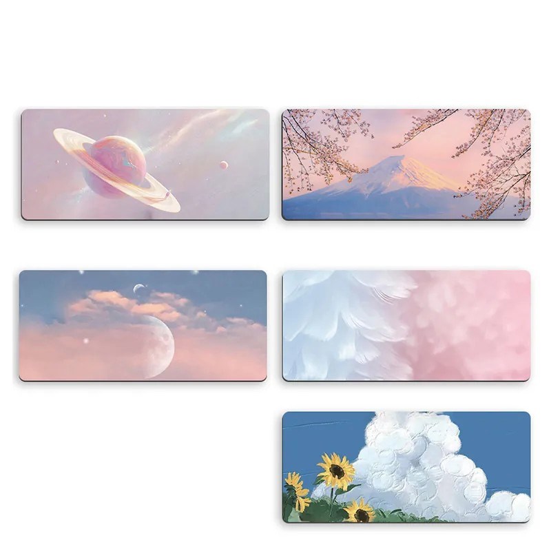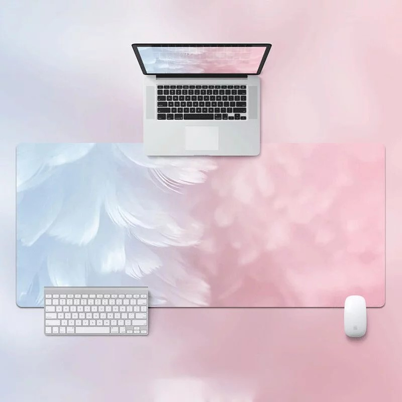 油畫系列超大遊戲滑鼠墊 80*40cm, 少女羽毛 藍色 + 粉色, 1個