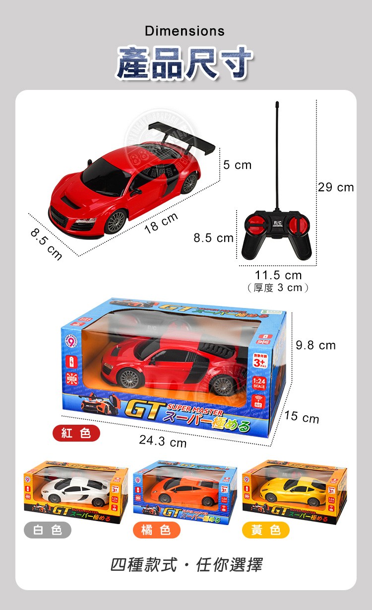 超跑系列 1:24無線遙控車經典車 含彩盒 ST553 遙控車18 x 8.5 x 5cm + 遙控器29 x 11.5 x 3cm, 白色, 1組