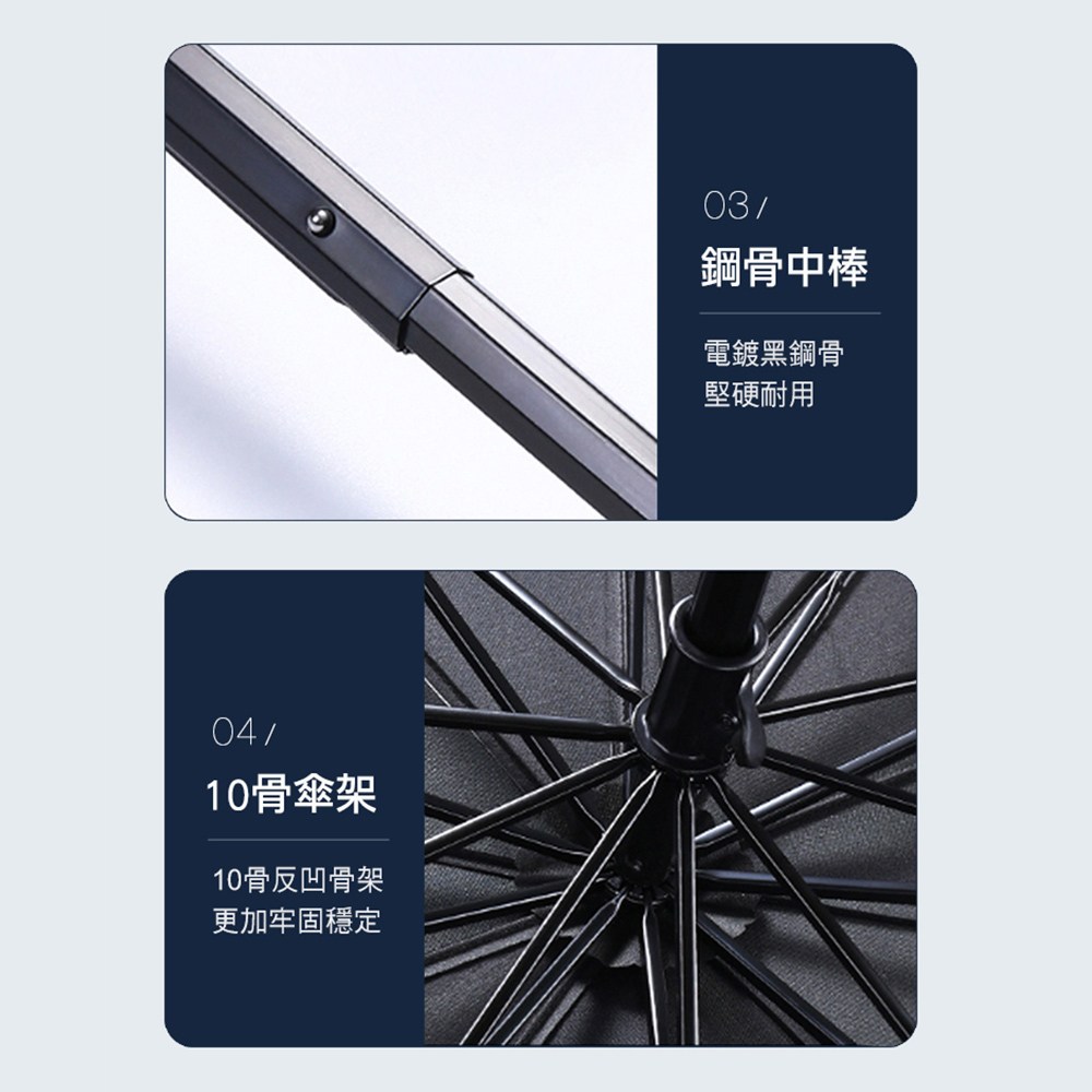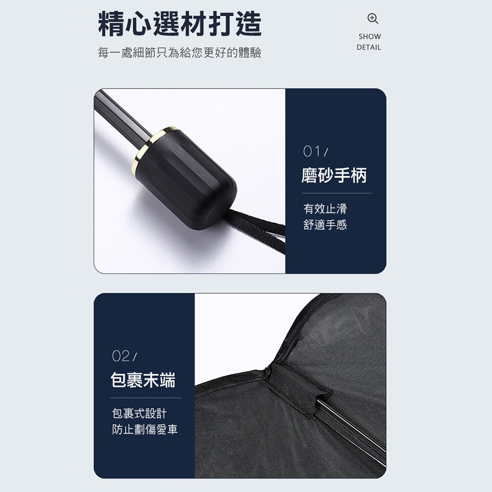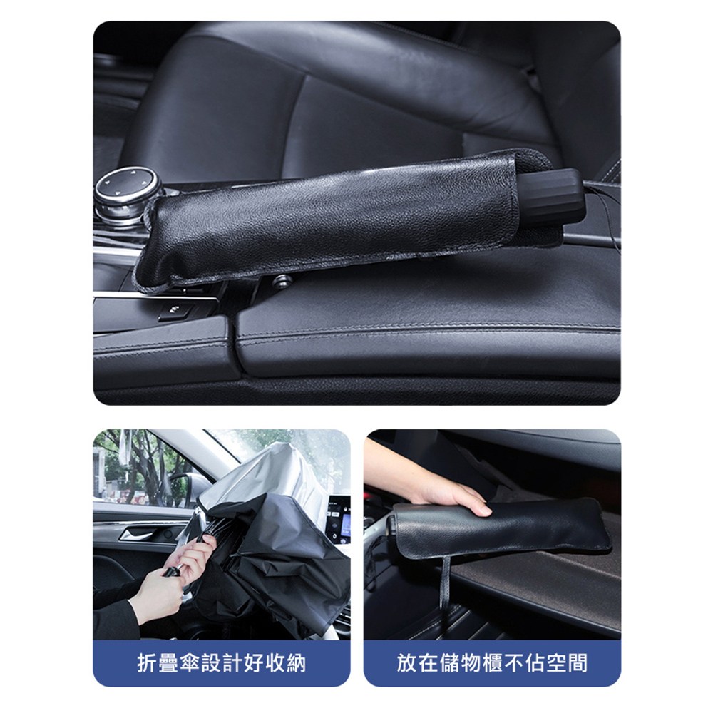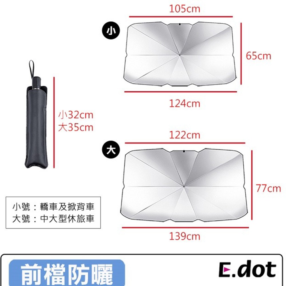 汽車前檔防曬隔熱遮陽傘,採用傘式設計,輕鬆展開即可有效阻擋陽光,降低車內溫度20-30°C,讓您不再受烈日曝曬之苦。材質選用電鍍黑鋼骨、碰擊布及鈦銀膠,堅固耐用且隔熱效果極佳。傘骨採用加粗十骨設計,更加牢固穩定,不易變形。收納方便,不佔空間,附贈精美皮套,讓您的愛車隨時保持涼爽舒適。