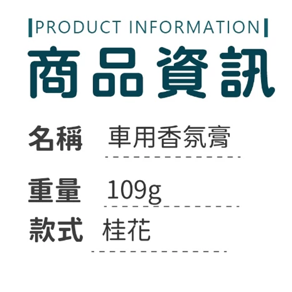 讓您的愛車隨時散發清新宜人的桂花香氣!這款車用香氛膏 S249,每罐109g,一組包含4罐,持久耐用,為您的行車空間帶來愉悅的氛圍。膏狀質地不易灑漏,使用更安心。精緻的外觀設計,不僅是香氛,更是提升車內質感的裝飾品。嚴選桂花香型,清新淡雅,有效去除異味,讓您在駕駛時也能享受舒適的香氛體驗。
