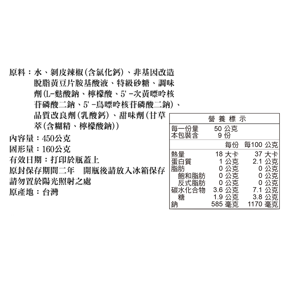 - 嚴選辣椒,獨家醃製技術,金蘭剝皮辣椒保留辣椒的鮮甜與微辣,口感豐富有層次,讓您食慾大開。