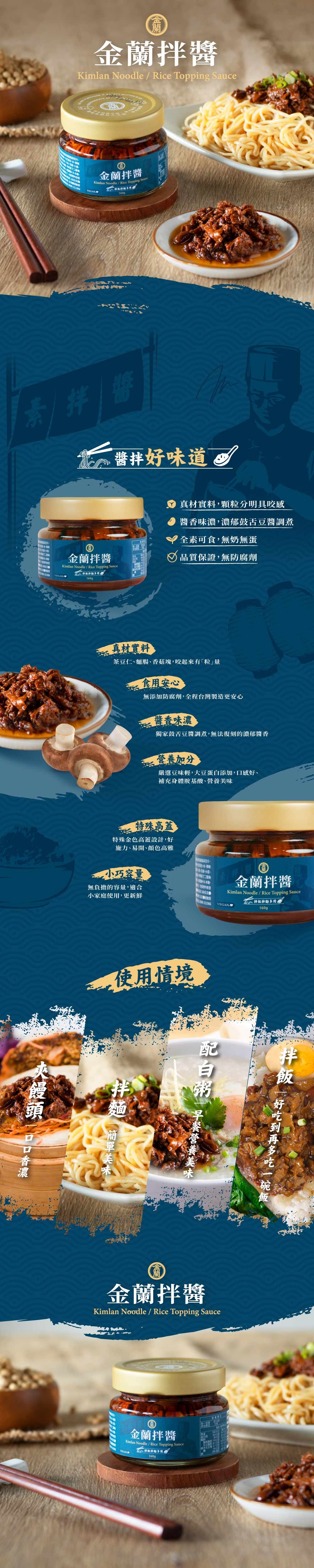 金蘭拌醬,嚴選非基因改造黃豆,搭配獨家鼓豆醬調煮,香氣濃郁,口感豐富。不含防腐劑,全素可食,讓您安心享用美味。無論是拌飯、拌麵、搭配饅頭或粥品,都能為您的餐點增添風味。小巧容量,適合小家庭使用,開封後請冷藏保存,確保新鮮。