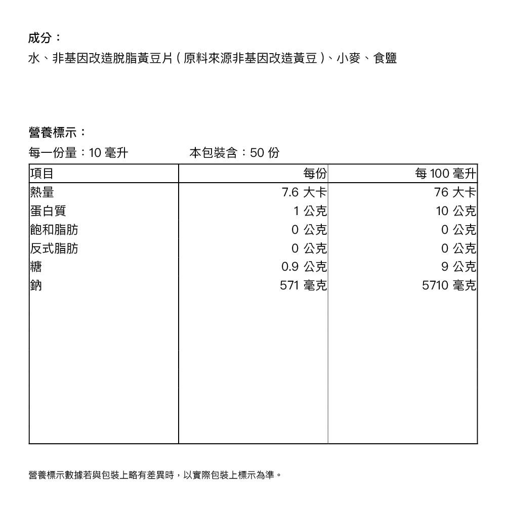 - 嚴選非基因改造黃豆釀造,無添加防腐劑,給家人最安心的美味。