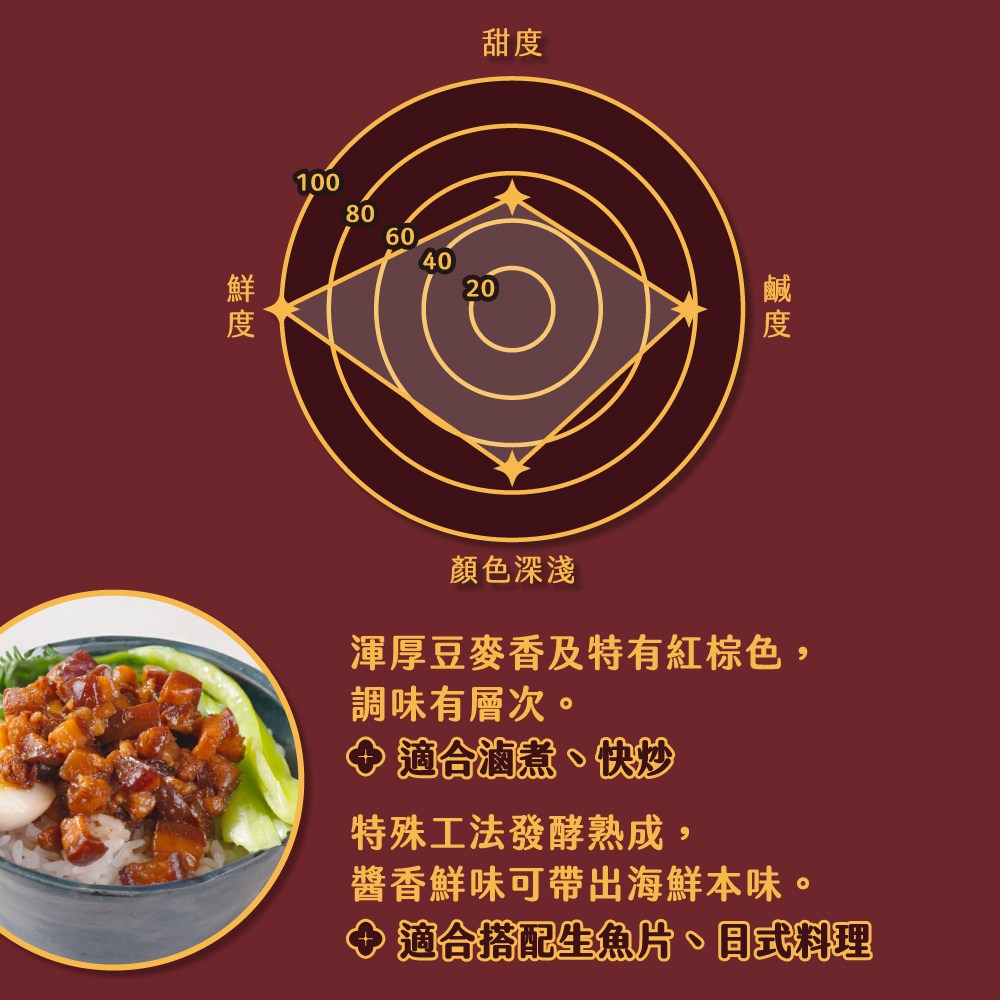 - 嚴選非基因改造黃豆釀造,保證健康安全,讓您安心享用,為全家人的健康把關。