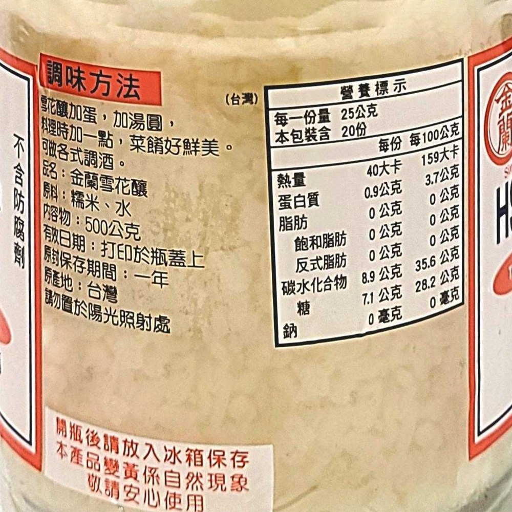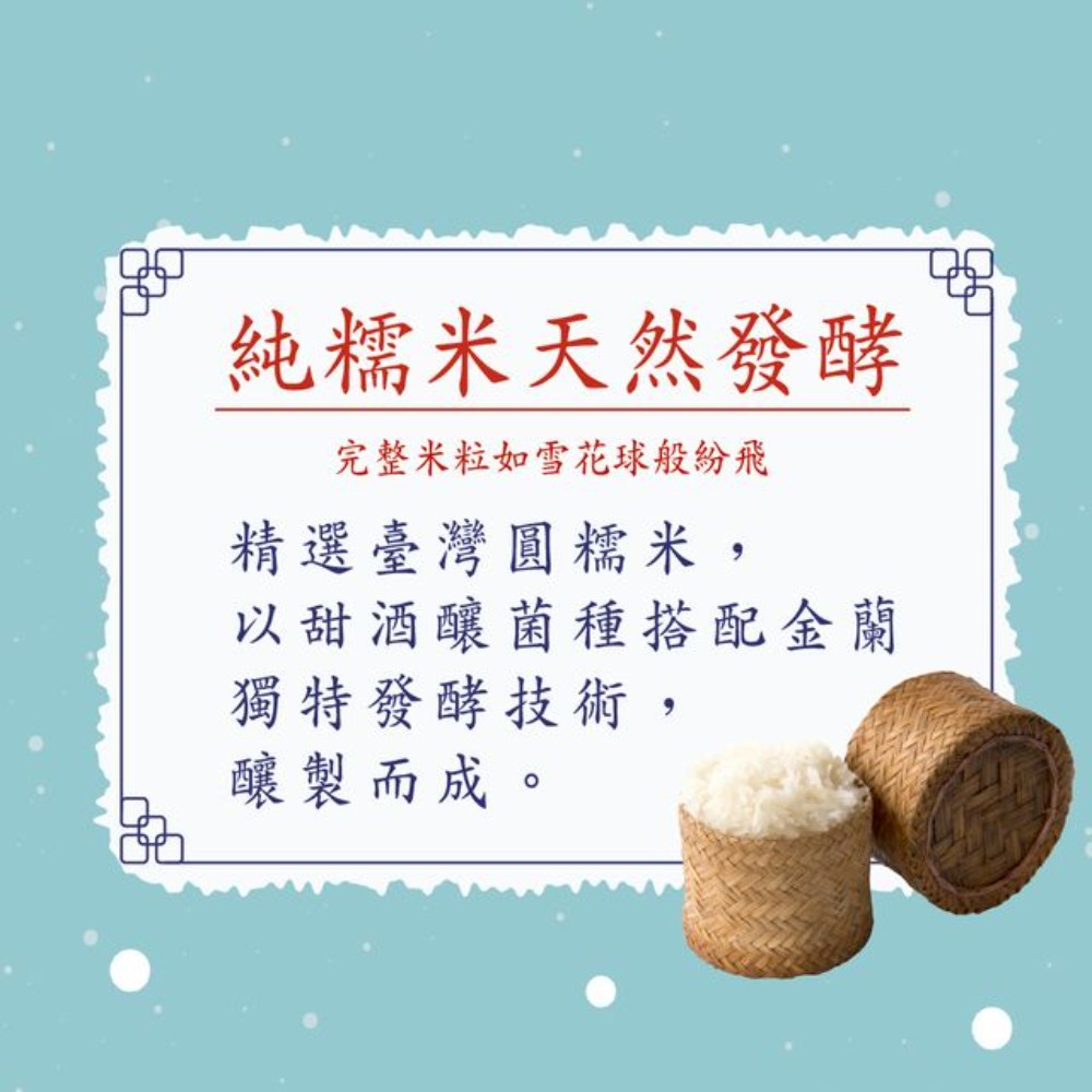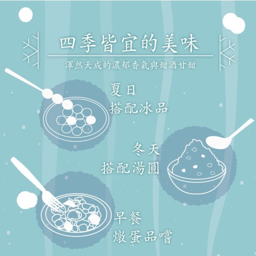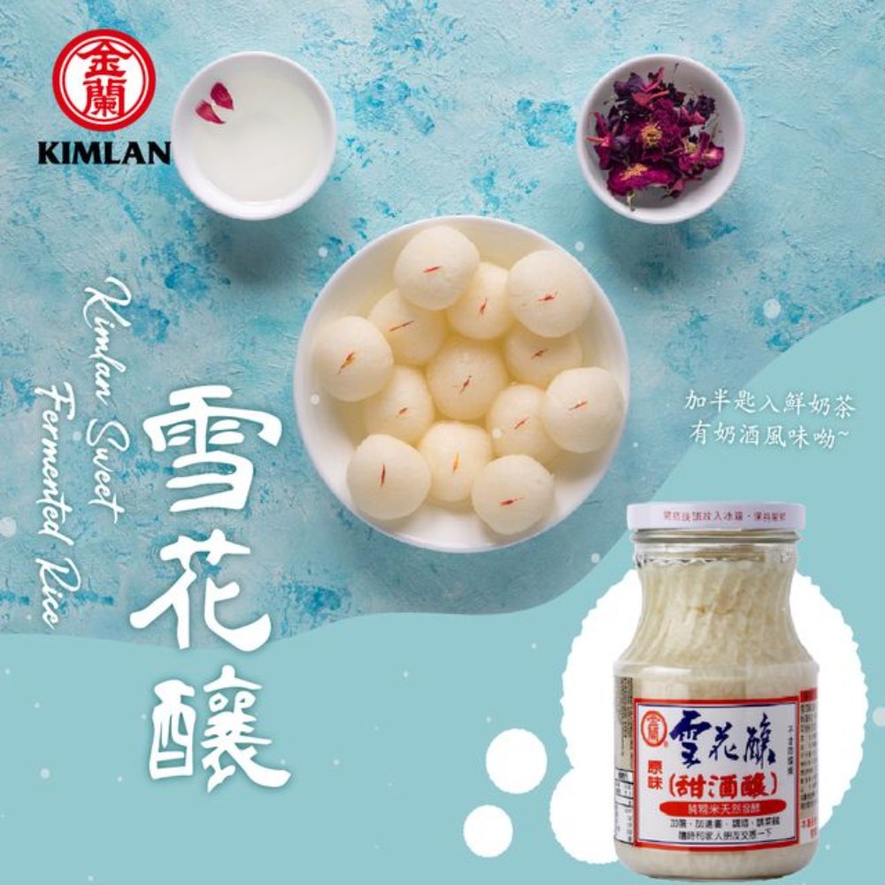 - 金蘭雪花釀,口感香醇濃郁,四季皆宜,無論搭配冰品或湯圓,都能帶來幸福滋味。