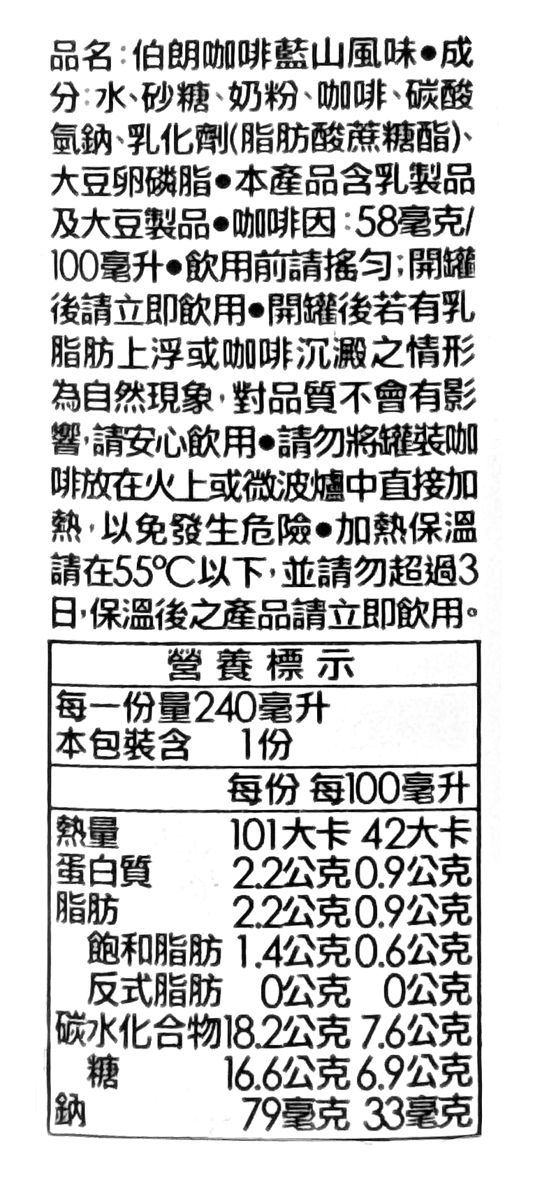 - 罐裝設計方便攜帶,隨時隨地享受一杯香濃的伯朗咖啡,讓您在忙碌的生活中也能輕鬆享受美味。