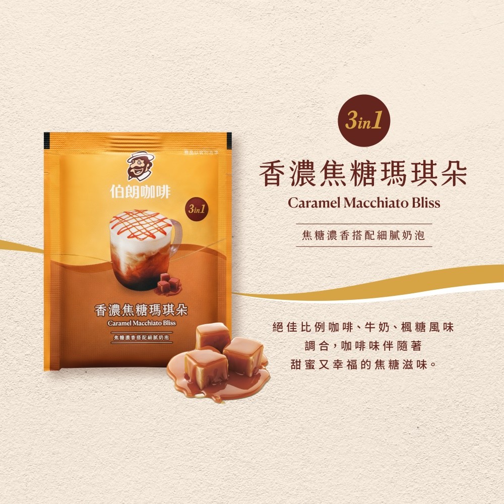 - 伯朗咖啡精選香濃焦糖瑪琪朵,獨特比例融合咖啡、牛奶與楓糖風味,每一口都帶來幸福的甜蜜享受。