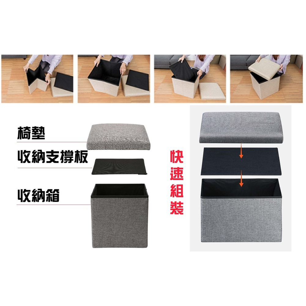 長方形收納椅 40 x 25 x 25cm, 灰色, 1個